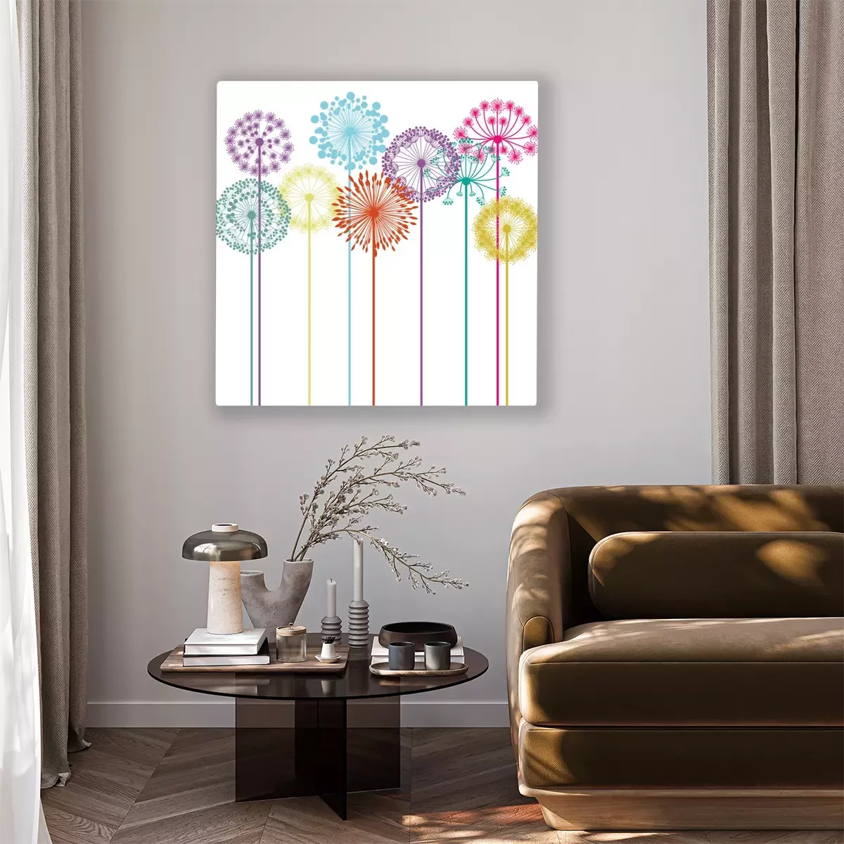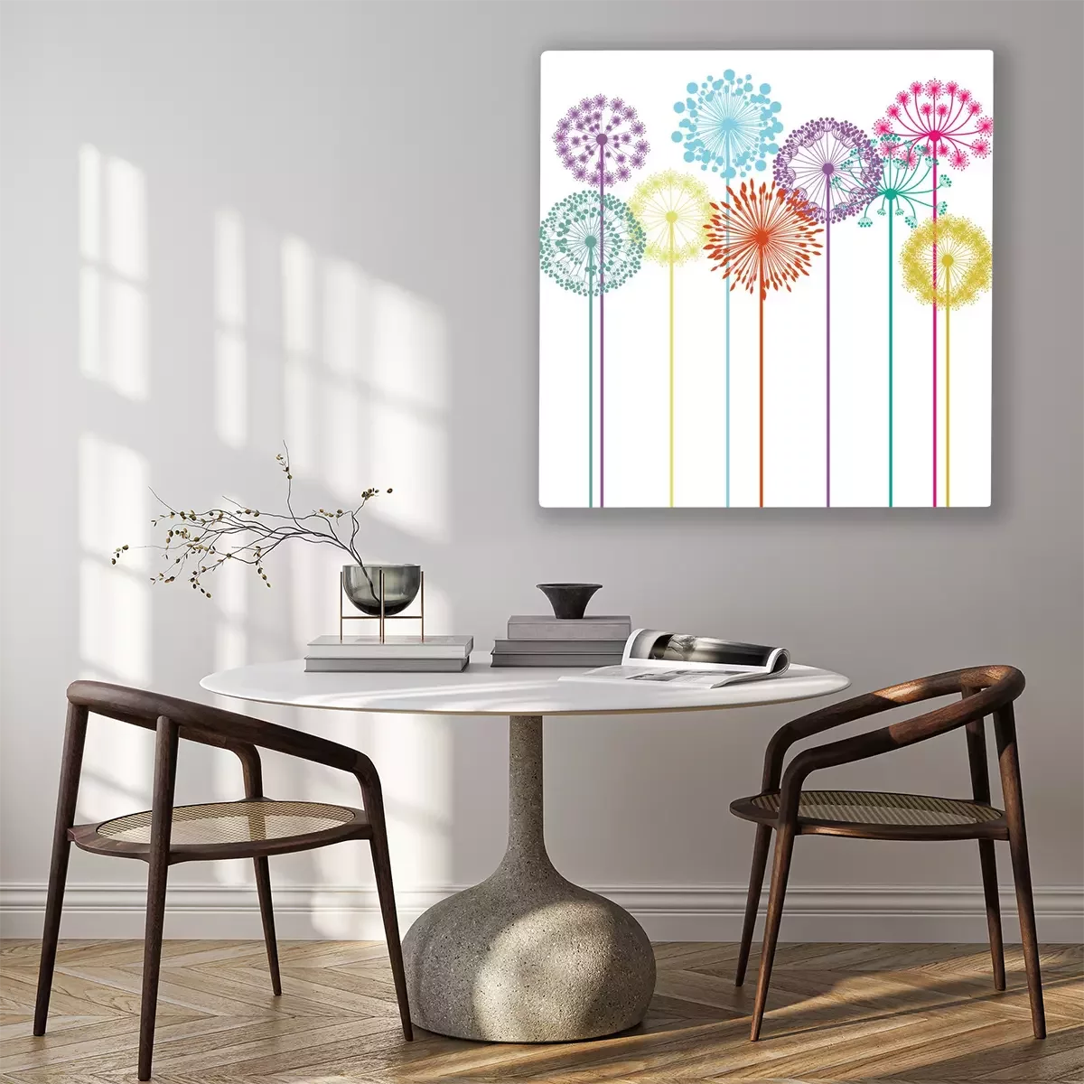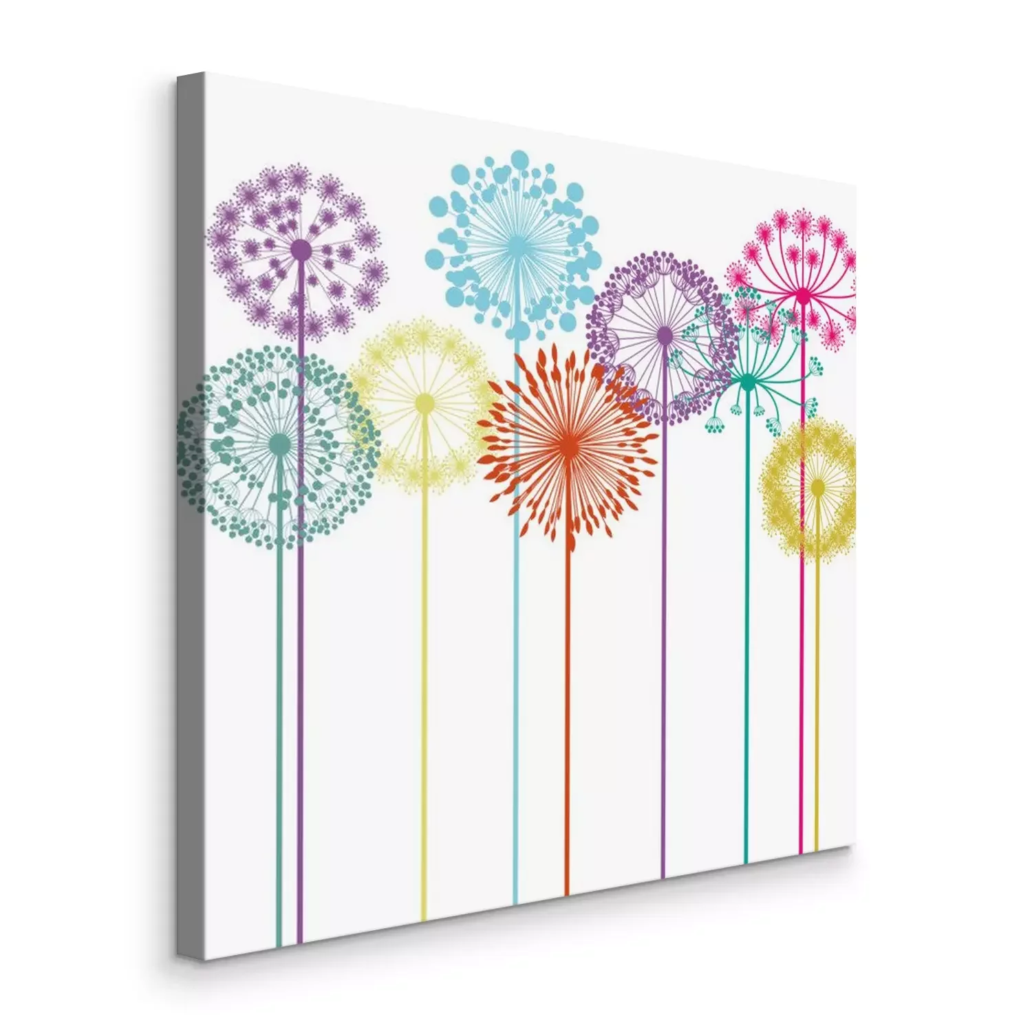 Canvas: Kleurrijke paardebloemen op een witte achtergrond