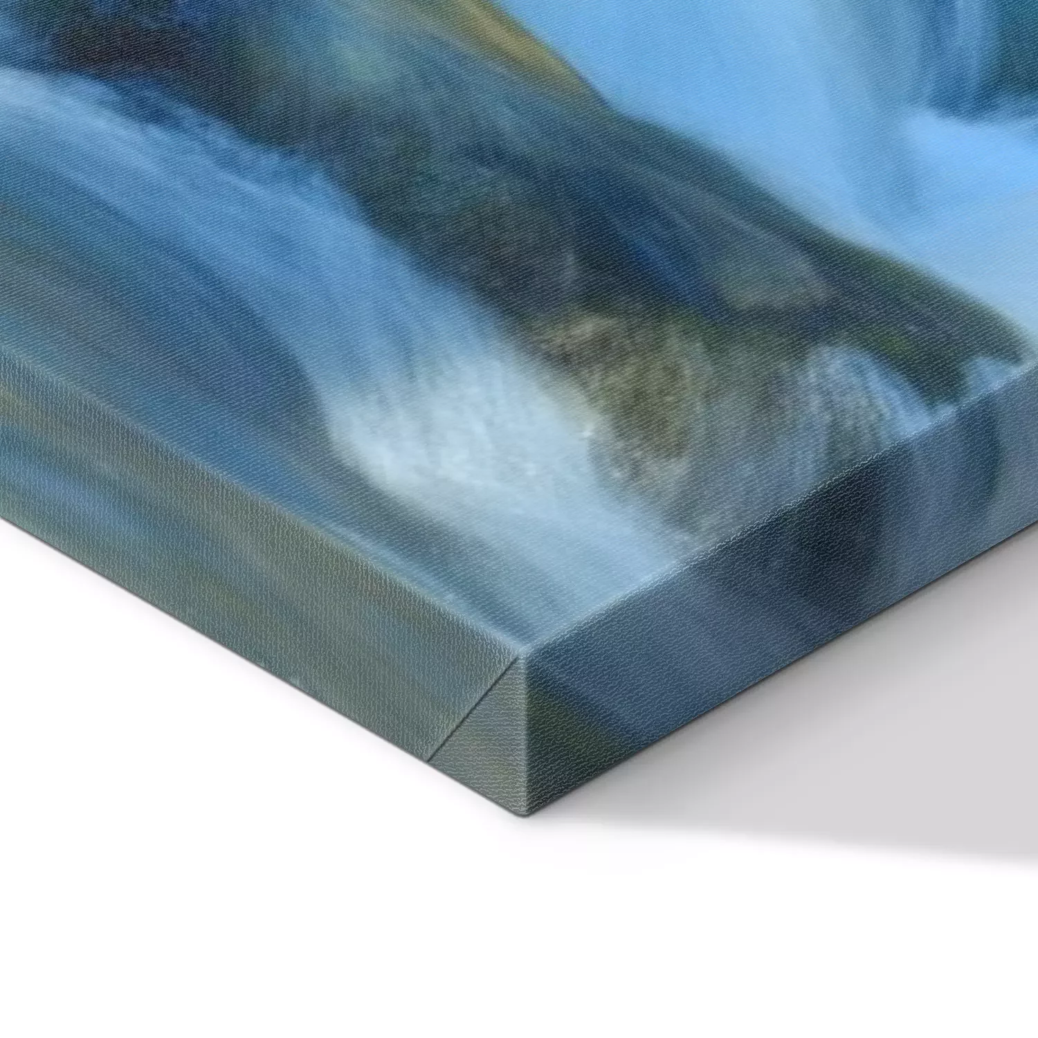 De print wordt aangebracht op hoogwaardig canvas dat op een schildersweefgetouw (spieraam) wordt gespannen. Omdat de print de zijranden bedekt, hoeft het ontwerp niet met een extra kader te worden omlijst. Wij raden ook composities aan die uit meerdere foto's bestaan en zo een coherente compositie vormen.