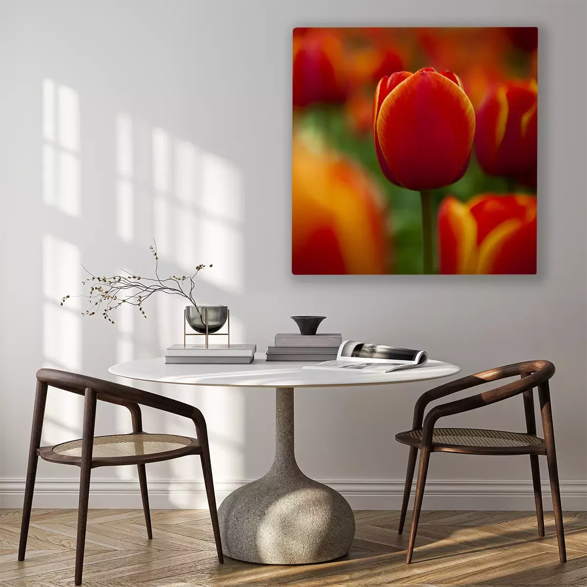 De print wordt aangebracht op hoogwaardig canvas dat op een schildersweefgetouw (spieraam) wordt gespannen. Omdat de print de zijranden bedekt, hoeft het ontwerp niet met een extra kader te worden omlijst. Wij raden ook composities aan die uit meerdere foto's bestaan en zo een coherente compositie vormen.