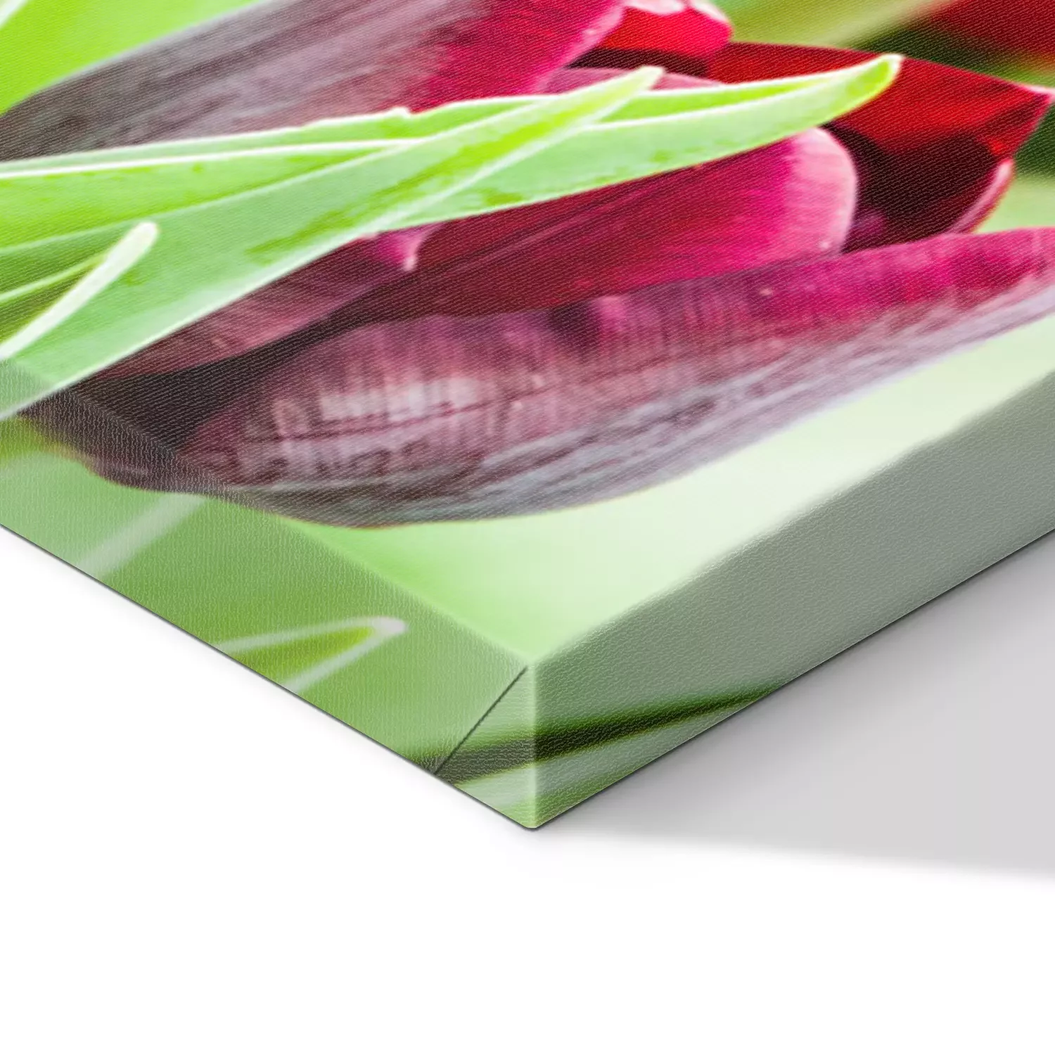De print wordt aangebracht op hoogwaardig canvas dat op een schildersweefgetouw (spieraam) wordt gespannen. Omdat de print de zijranden bedekt, hoeft het ontwerp niet met een extra kader te worden omlijst. Wij raden ook composities aan die uit meerdere foto's bestaan en zo een coherente compositie vormen.