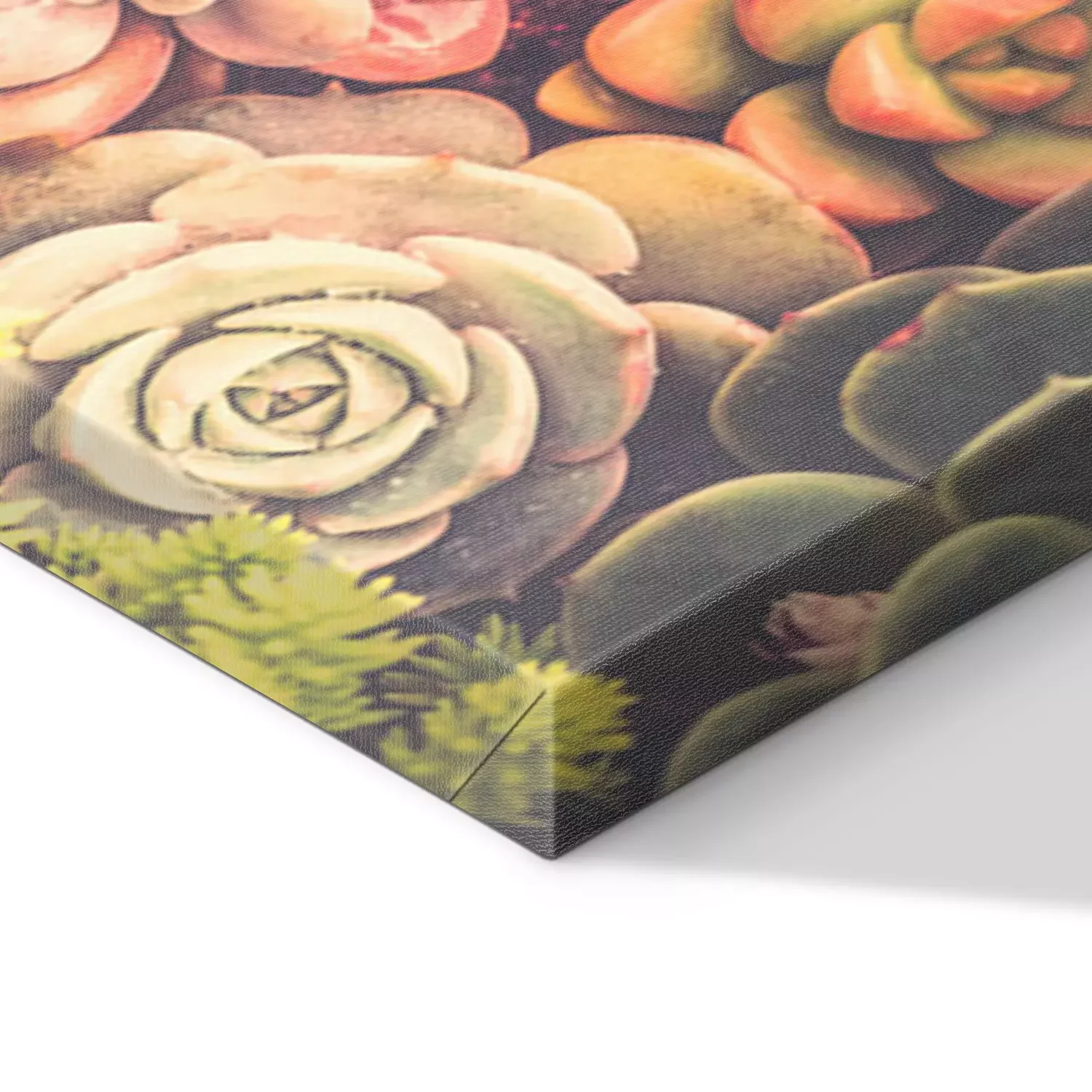 De print wordt aangebracht op hoogwaardig canvas dat op een schildersweefgetouw (spieraam) wordt gespannen. Omdat de print de zijranden bedekt, hoeft het ontwerp niet met een extra kader te worden omlijst. Wij raden ook composities aan die uit meerdere foto's bestaan en zo een coherente compositie vormen.