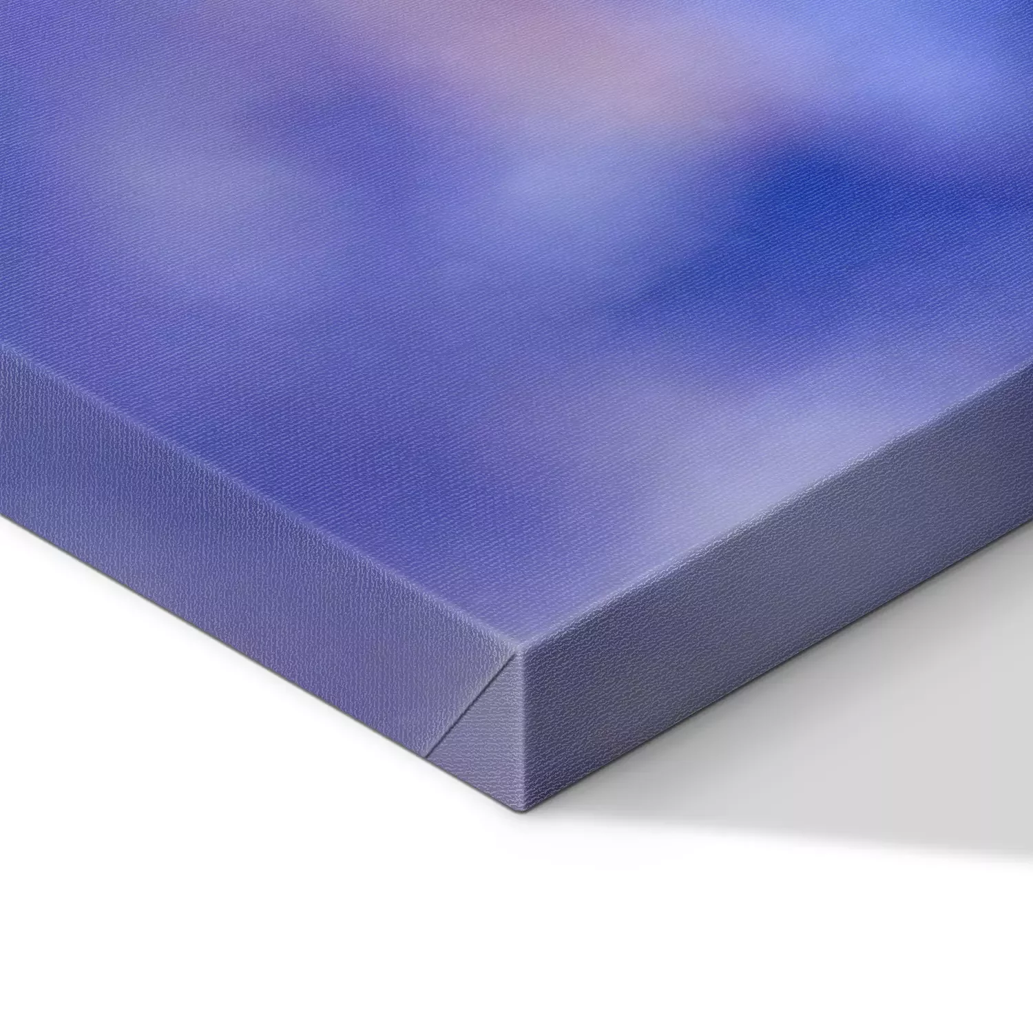 De print wordt aangebracht op hoogwaardig canvas dat op een schildersweefgetouw (spieraam) wordt gespannen. Omdat de print de zijranden bedekt, hoeft het ontwerp niet met een extra kader te worden omlijst. Wij raden ook composities aan die uit meerdere foto's bestaan en zo een coherente compositie vormen.