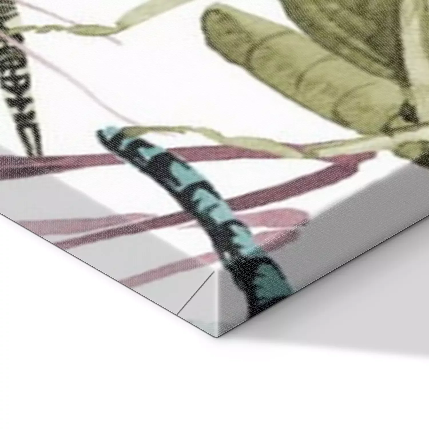 De print wordt aangebracht op hoogwaardig canvas dat op een schildersweefgetouw (spieraam) wordt gespannen. Omdat de print de zijranden bedekt, hoeft het ontwerp niet met een extra kader te worden omlijst. Wij raden ook composities aan die uit meerdere foto's bestaan en zo een coherente compositie vormen.