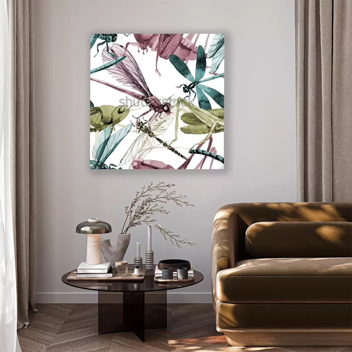 Canvas Kleurrijke vliegende insecten