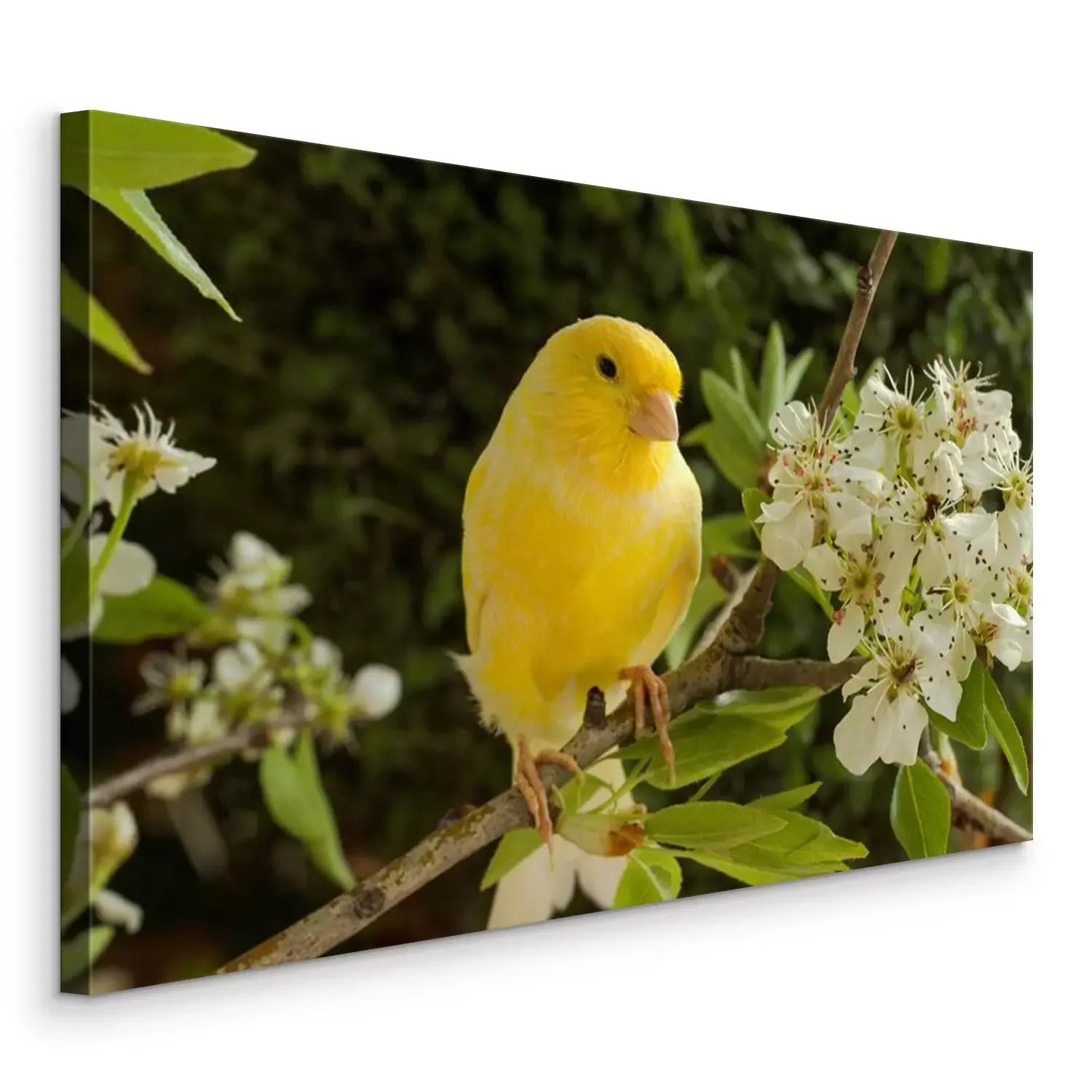 Canvas Kleurrijke vogel en witte bloemen