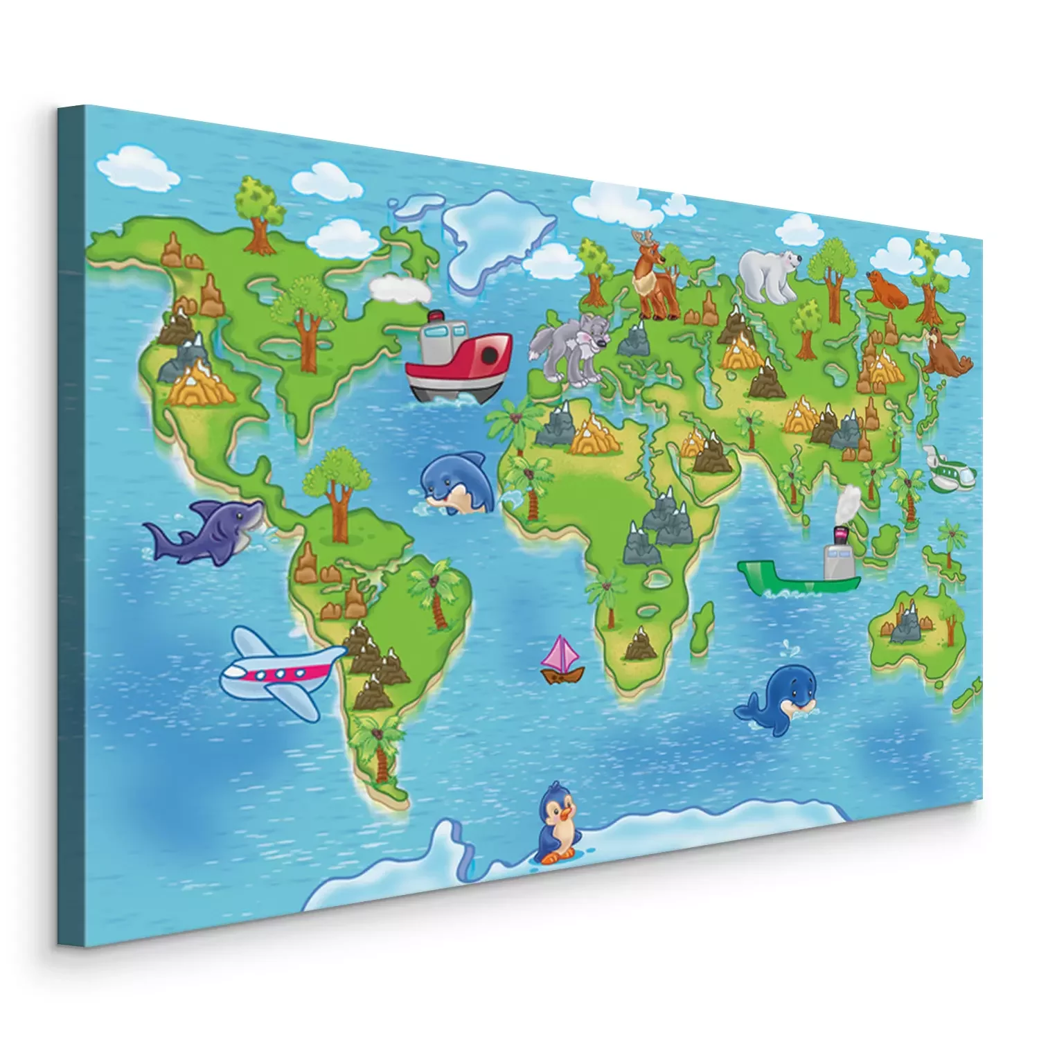 Canvas: Kleurrijke wereldkaart voor kinderen