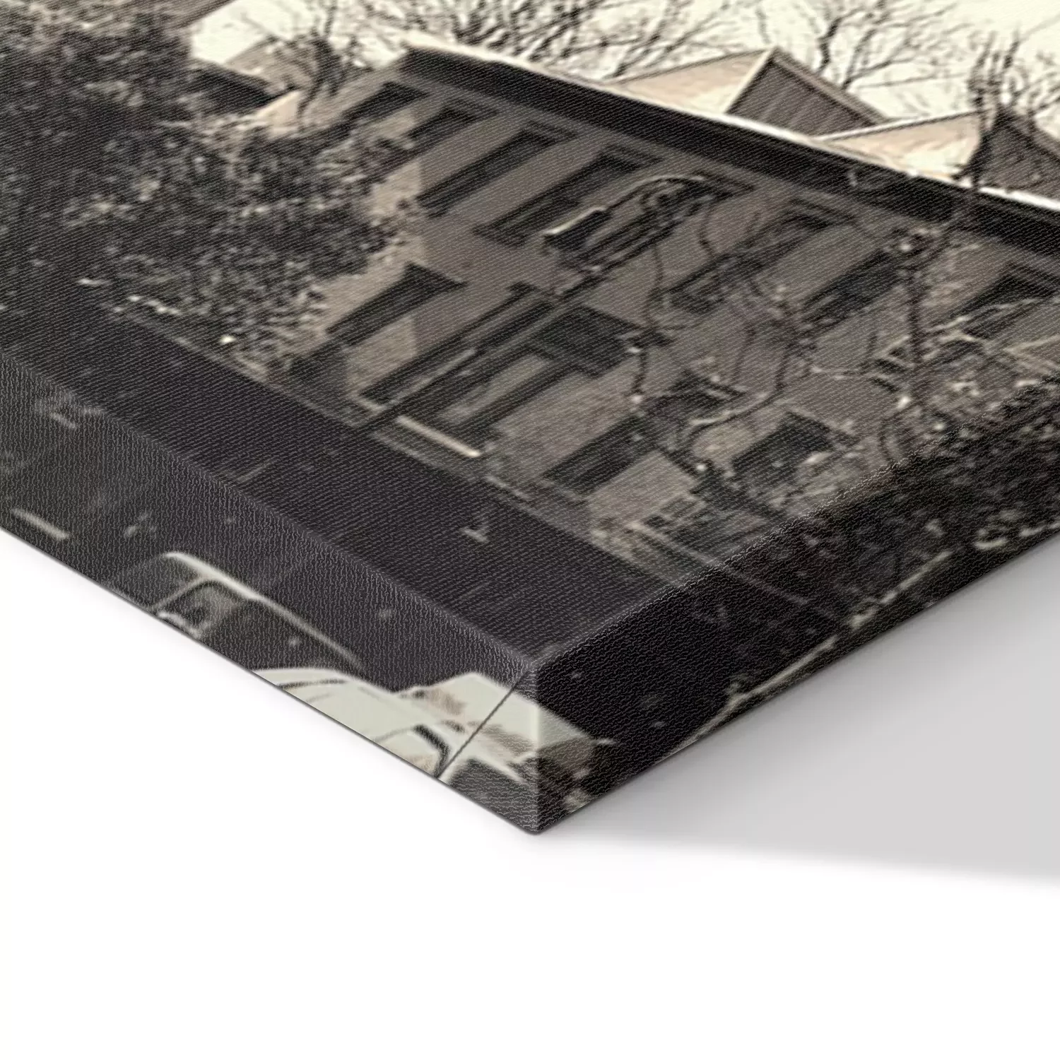 De print wordt aangebracht op hoogwaardig canvas dat op een schildersweefgetouw (spieraam) wordt gespannen. Omdat de print de zijranden bedekt, hoeft het ontwerp niet met een extra kader te worden omlijst. Wij raden ook composities aan die uit meerdere foto's bestaan en zo een coherente compositie vormen.