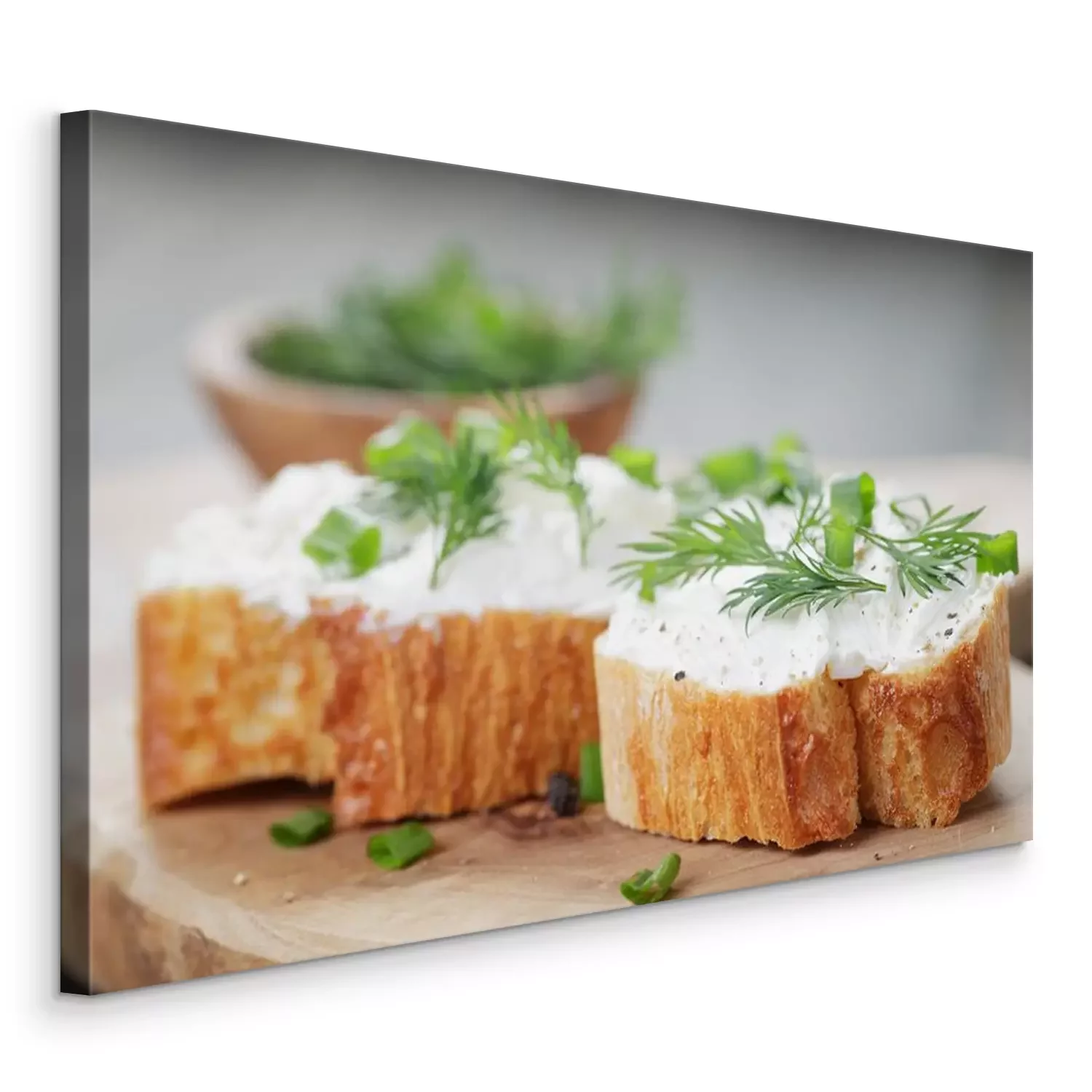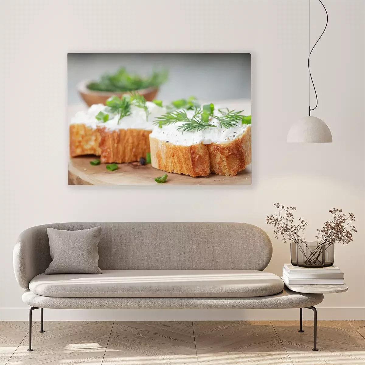 Canvas: knapperig stokbrood sneetjes met roomkaas en kruiden