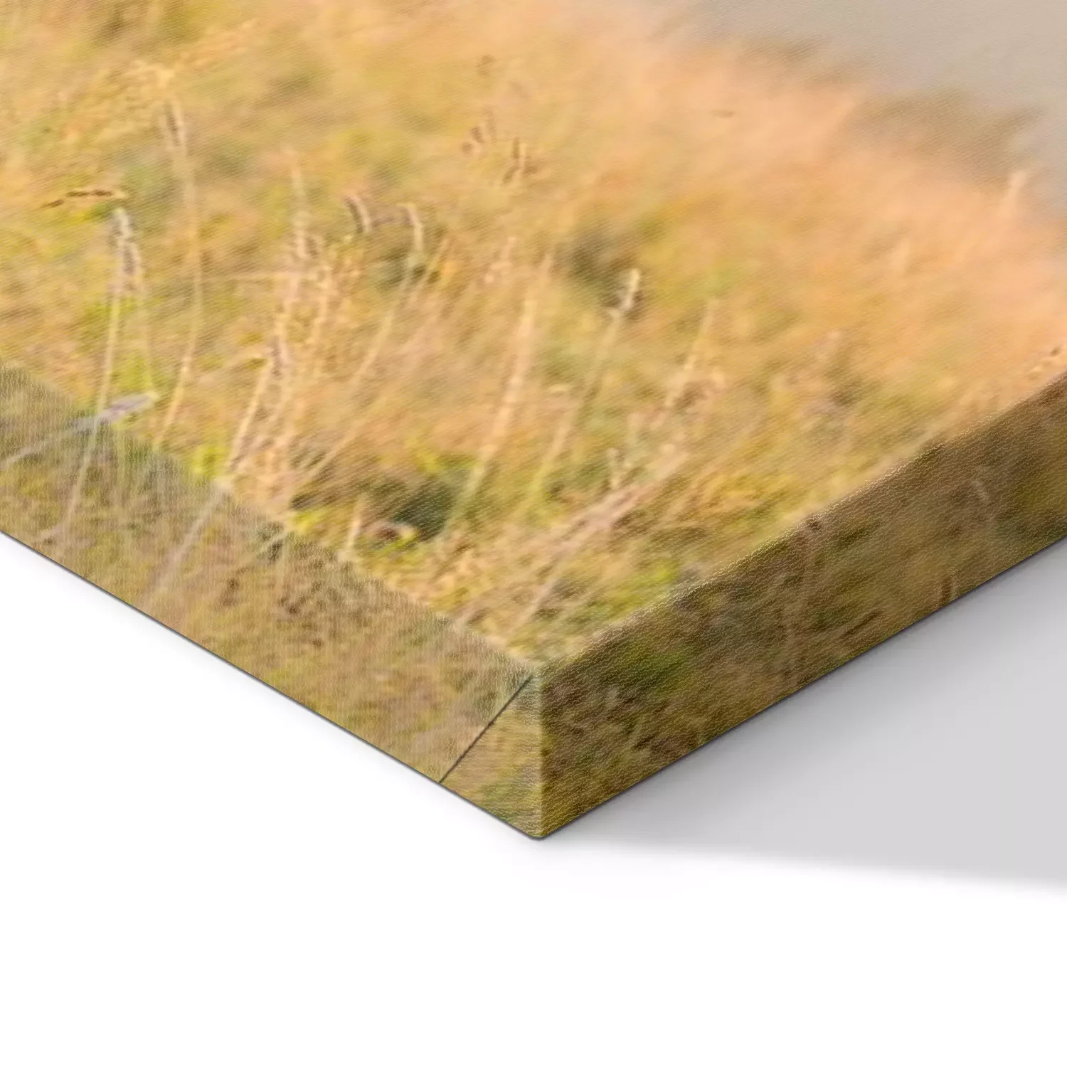 De print wordt aangebracht op hoogwaardig canvas dat op een schildersweefgetouw (spieraam) wordt gespannen. Omdat de print de zijranden bedekt, hoeft het ontwerp niet met een extra kader te worden omlijst. Wij raden ook composities aan die uit meerdere foto's bestaan en zo een coherente compositie vormen.