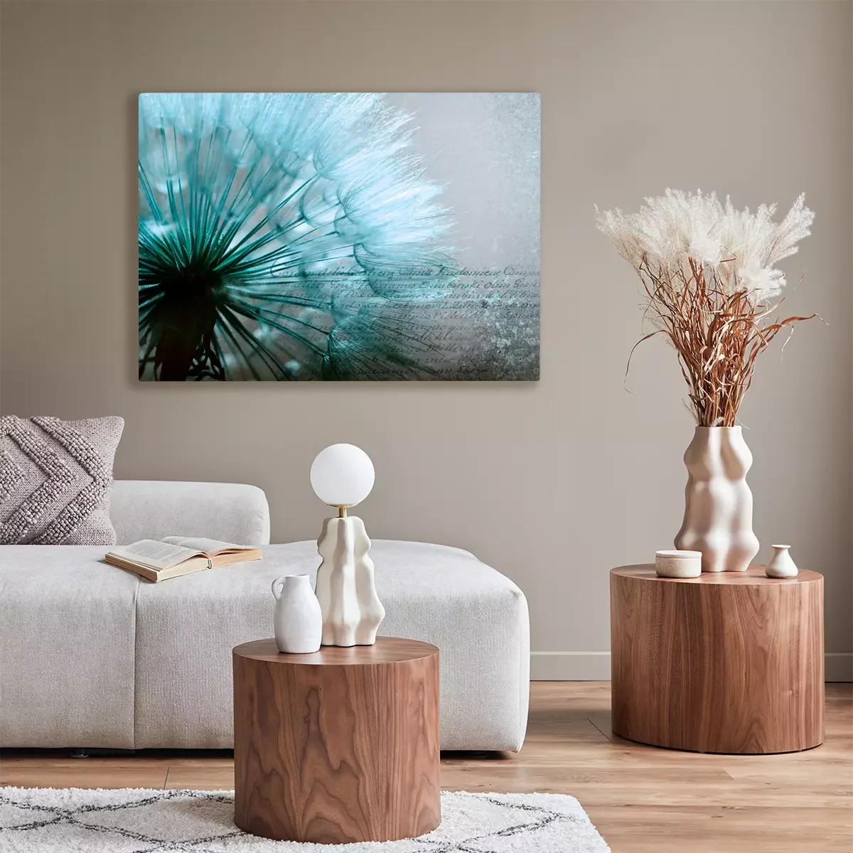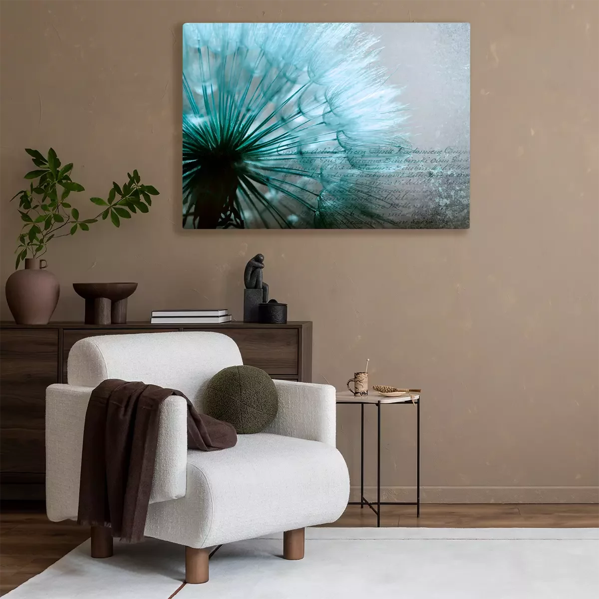 Koele blauwe paardenbloem met tekst op de achtergrond