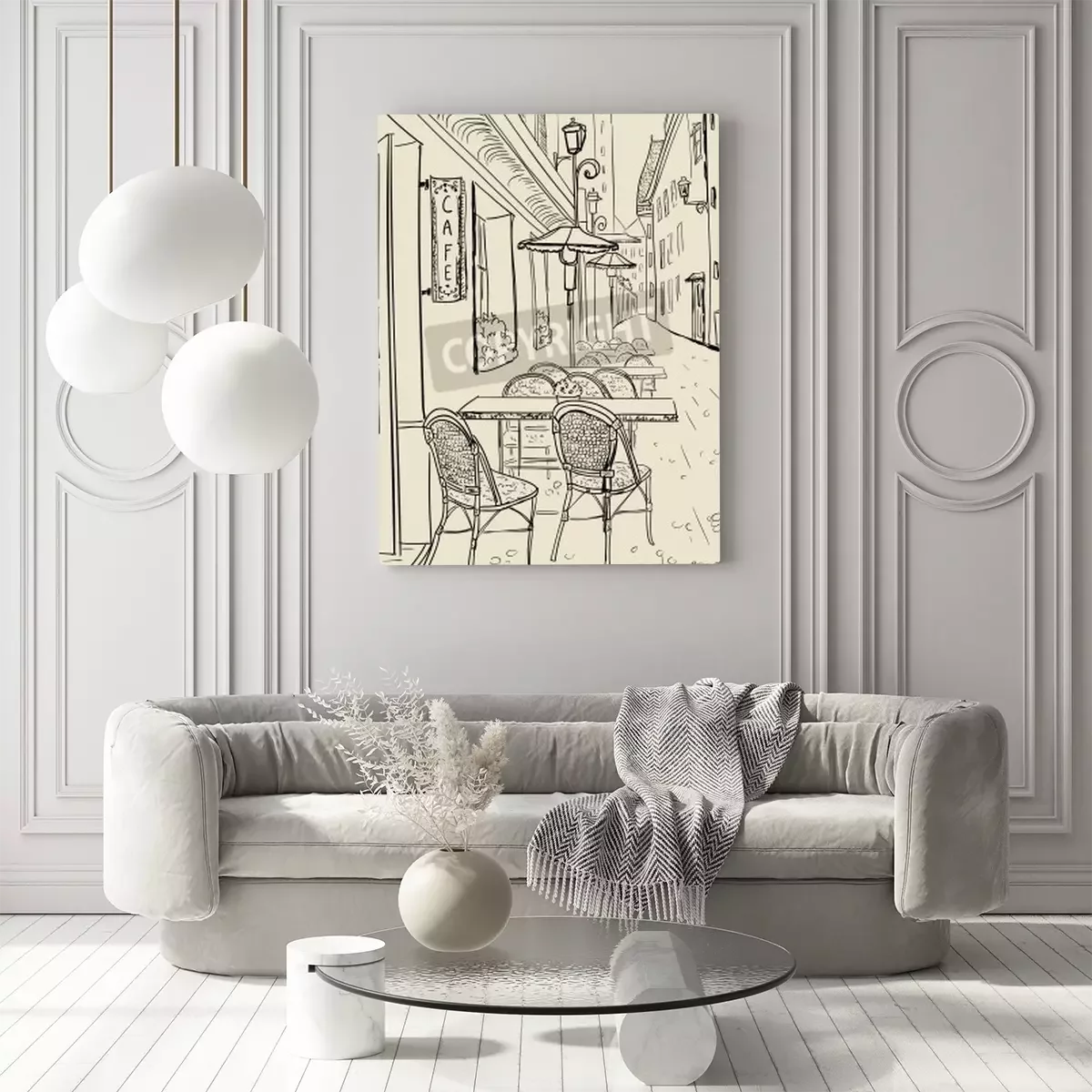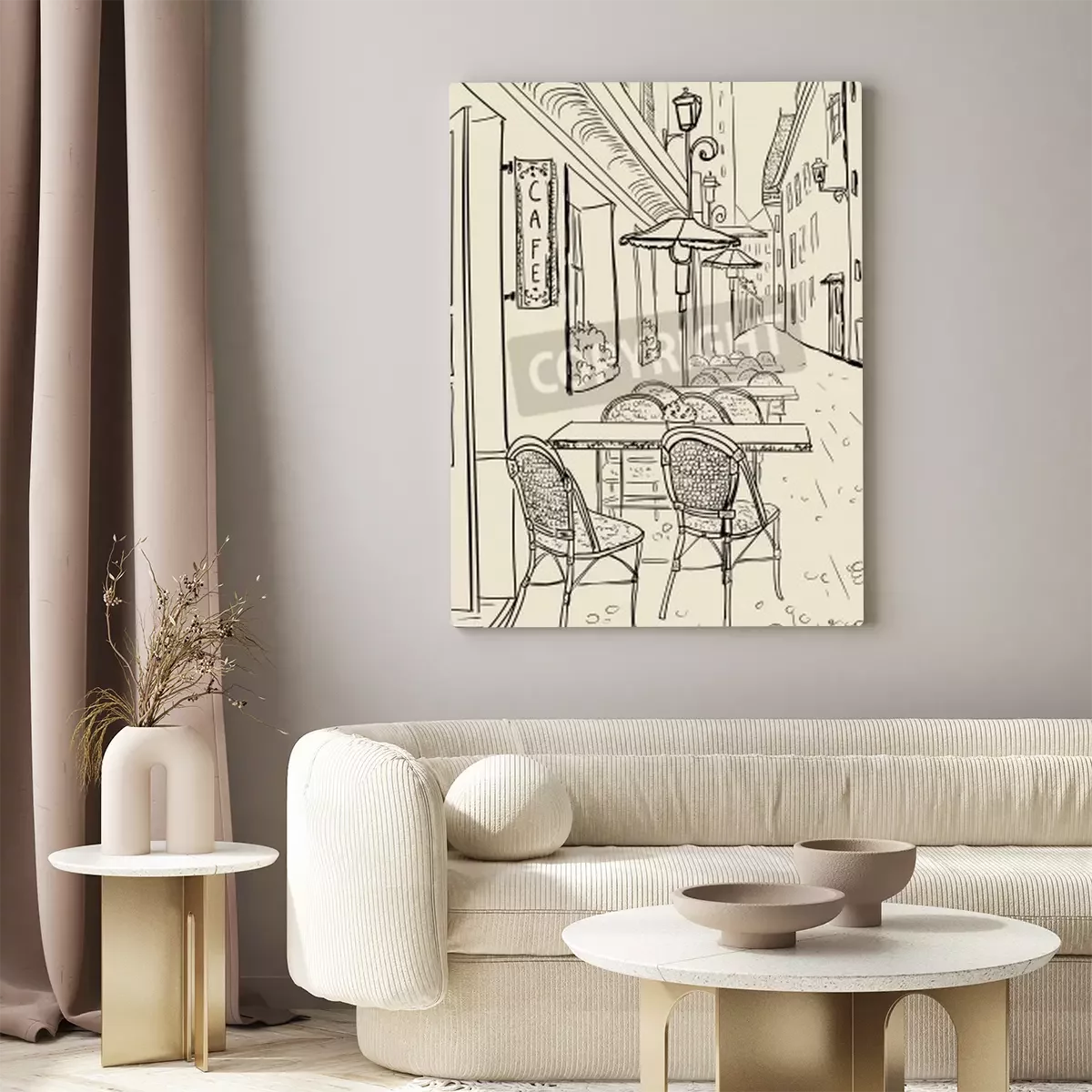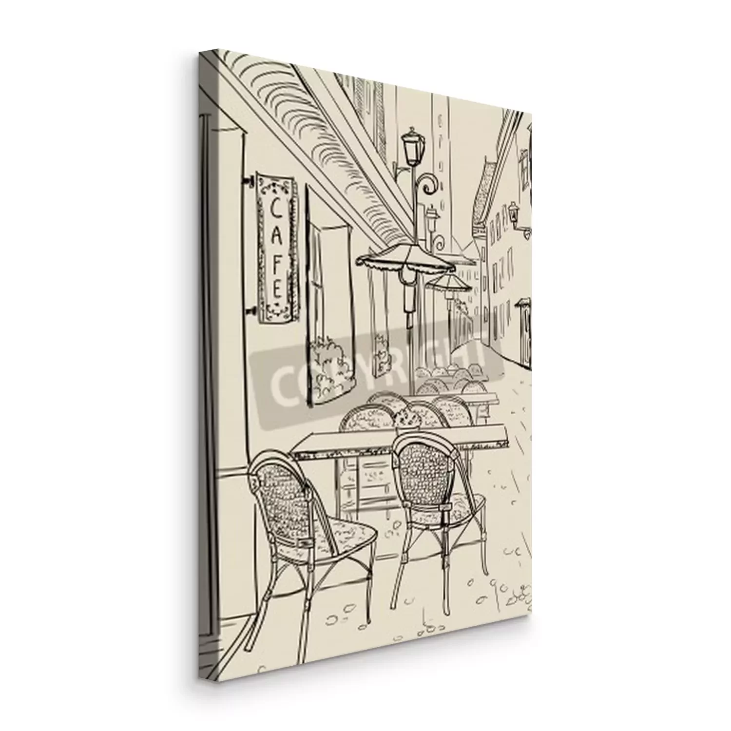 Canvas Koffie van de straat in de oude binnenstad van schets illustratie.