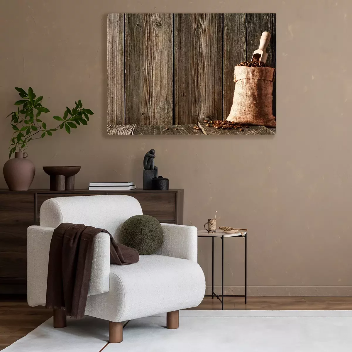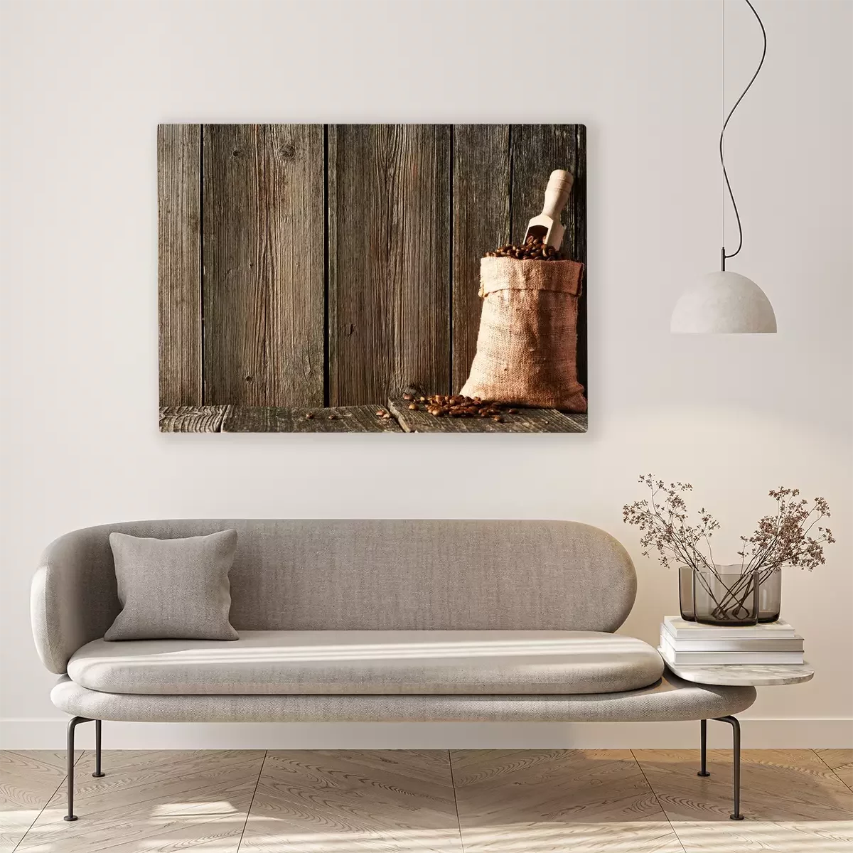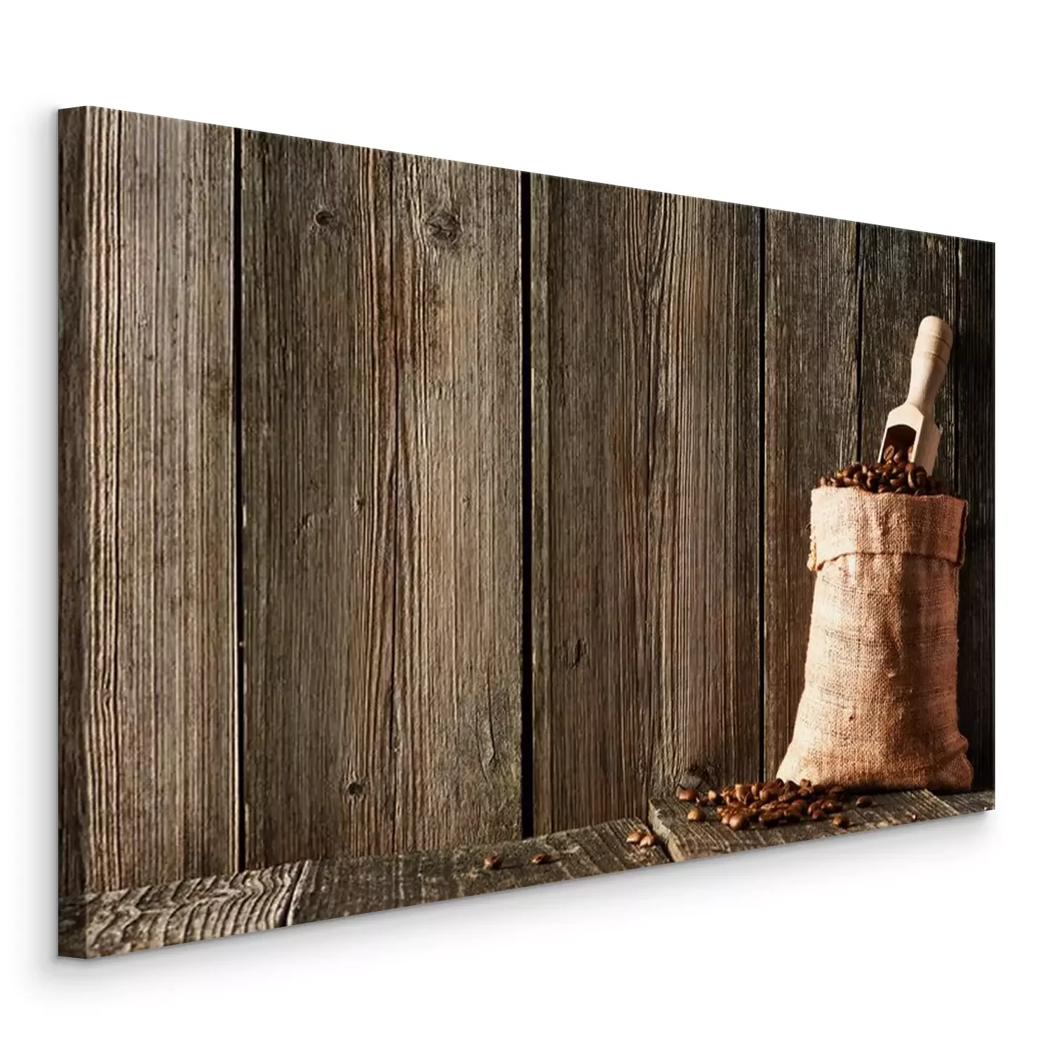 Canvas: Koffiebonen en lepel in zak
