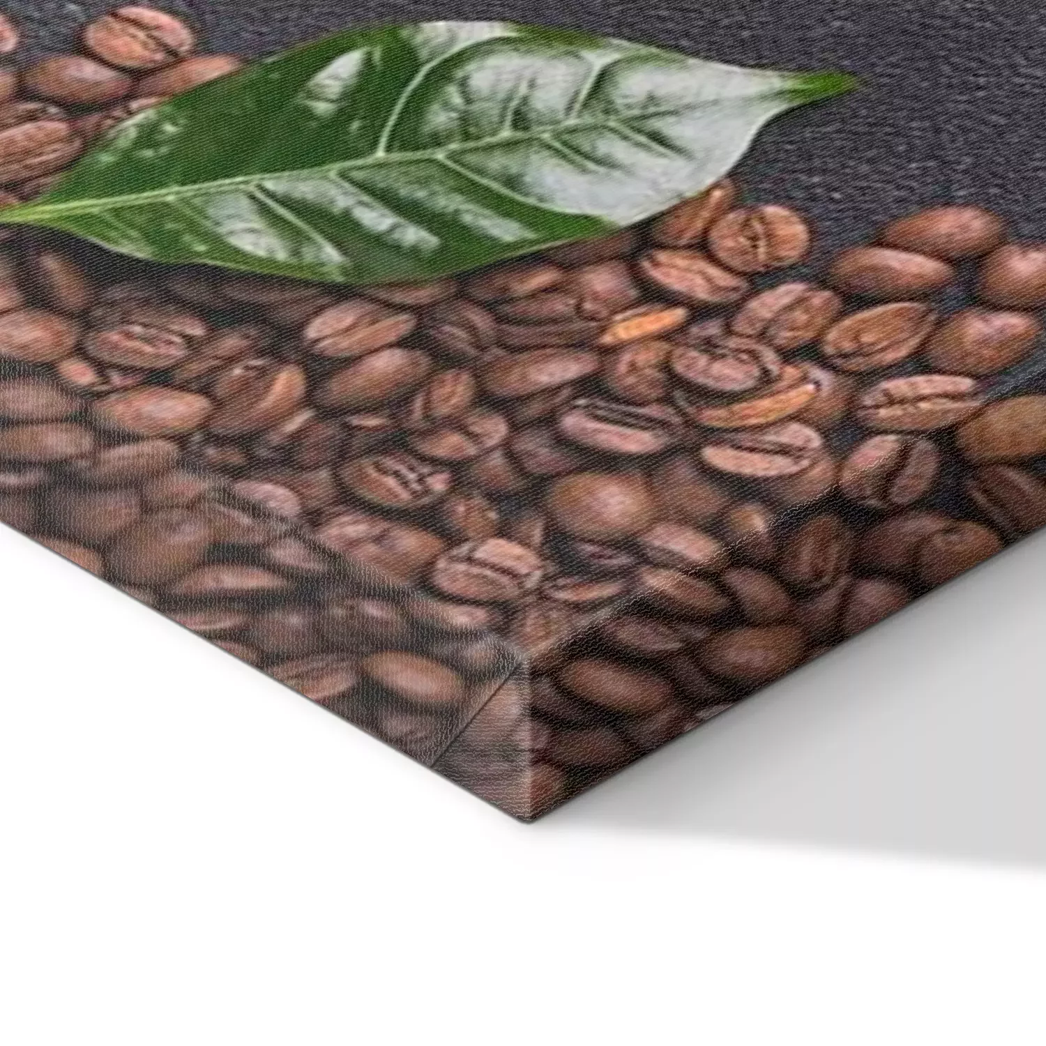 Canvas: Koffiebonen met koffiebladeren op zwarte achtergrond