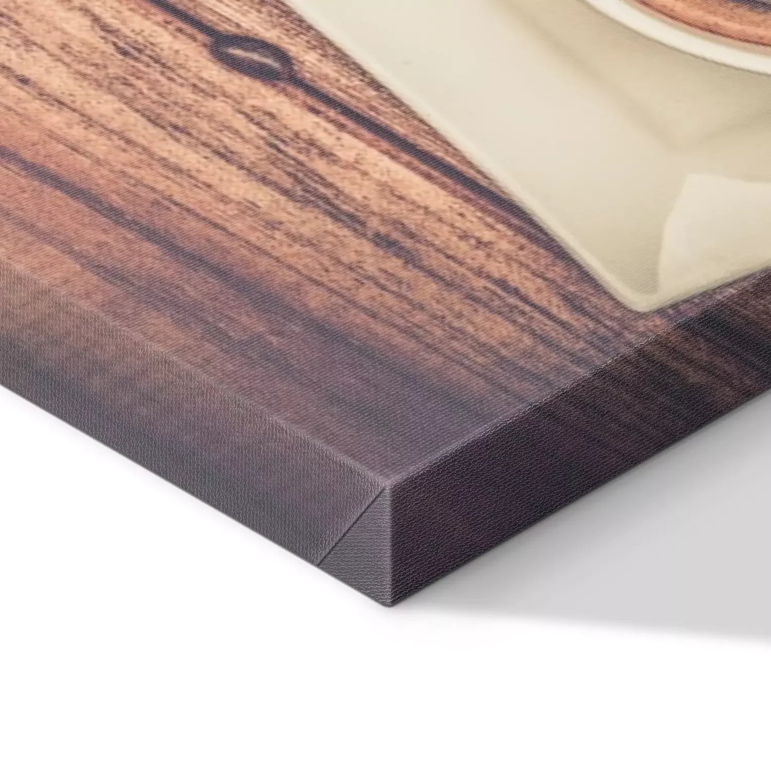 De print wordt aangebracht op hoogwaardig canvas dat op een schildersweefgetouw (spieraam) wordt gespannen. Omdat de print de zijranden bedekt, hoeft het ontwerp niet met een extra kader te worden omlijst. Wij raden ook composities aan die uit meerdere foto's bestaan en zo een coherente compositie vormen.
