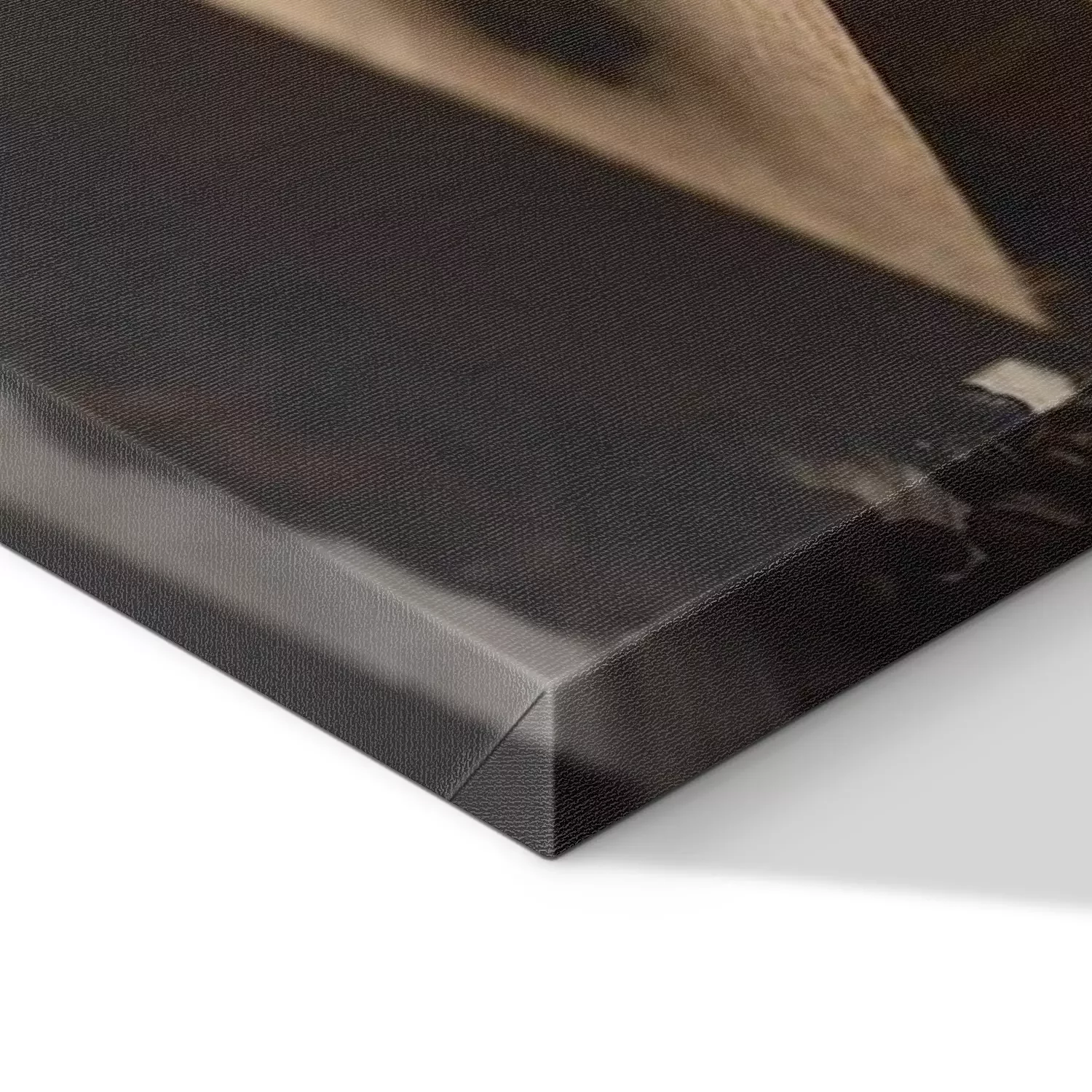 De print wordt aangebracht op hoogwaardig canvas dat op een schildersweefgetouw (spieraam) wordt gespannen. Omdat de print de zijranden bedekt, hoeft het ontwerp niet met een extra kader te worden omlijst. Wij raden ook composities aan die uit meerdere foto's bestaan en zo een coherente compositie vormen.