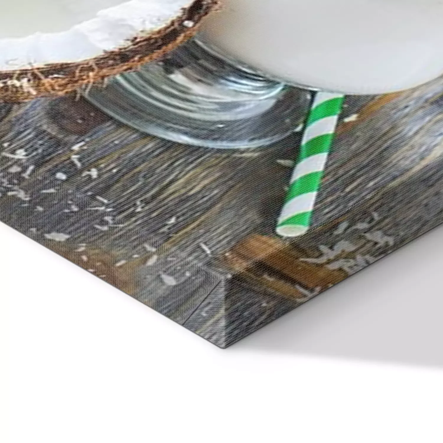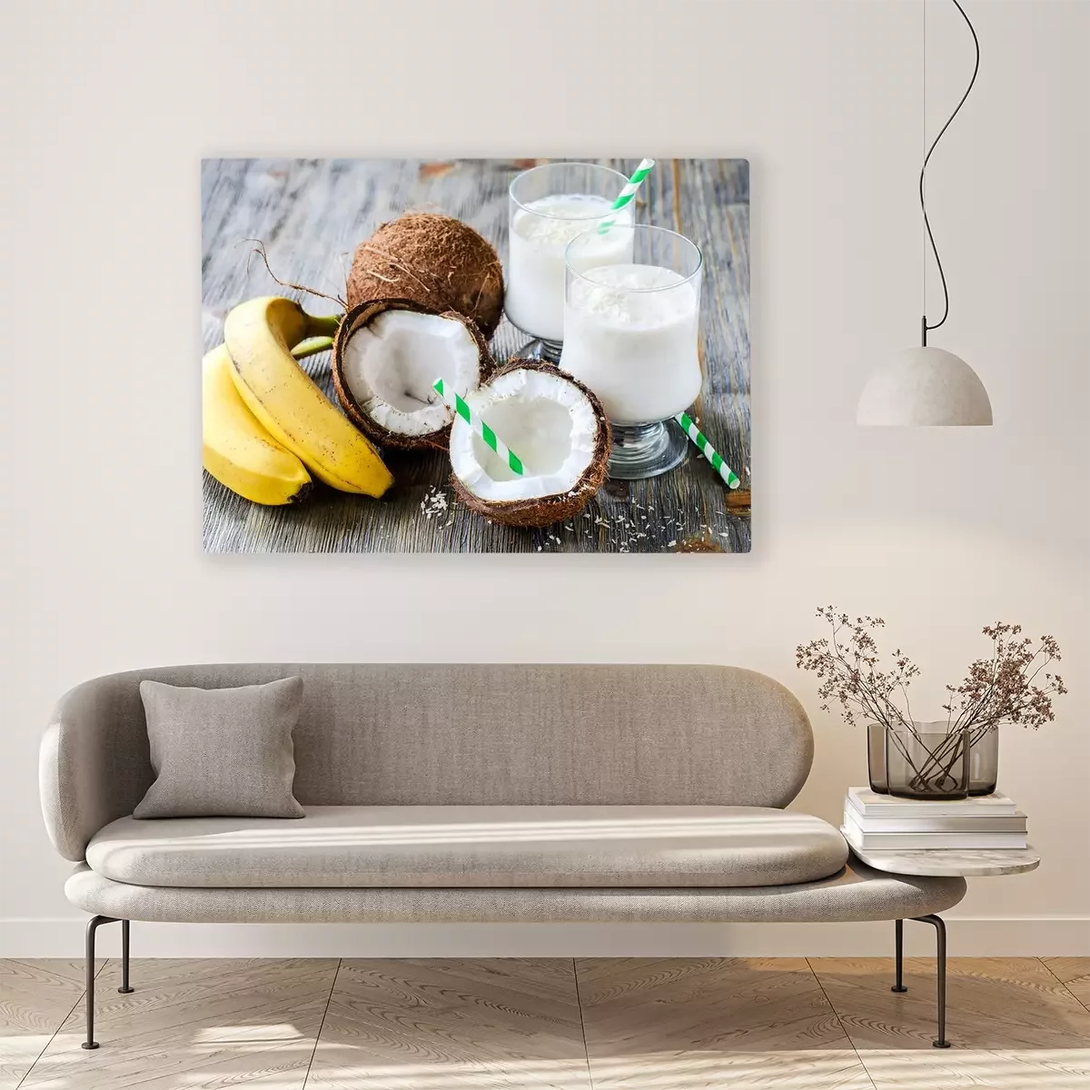 Canvas: Kokosmelk smoothie drankje met bananen op houten achtergrond