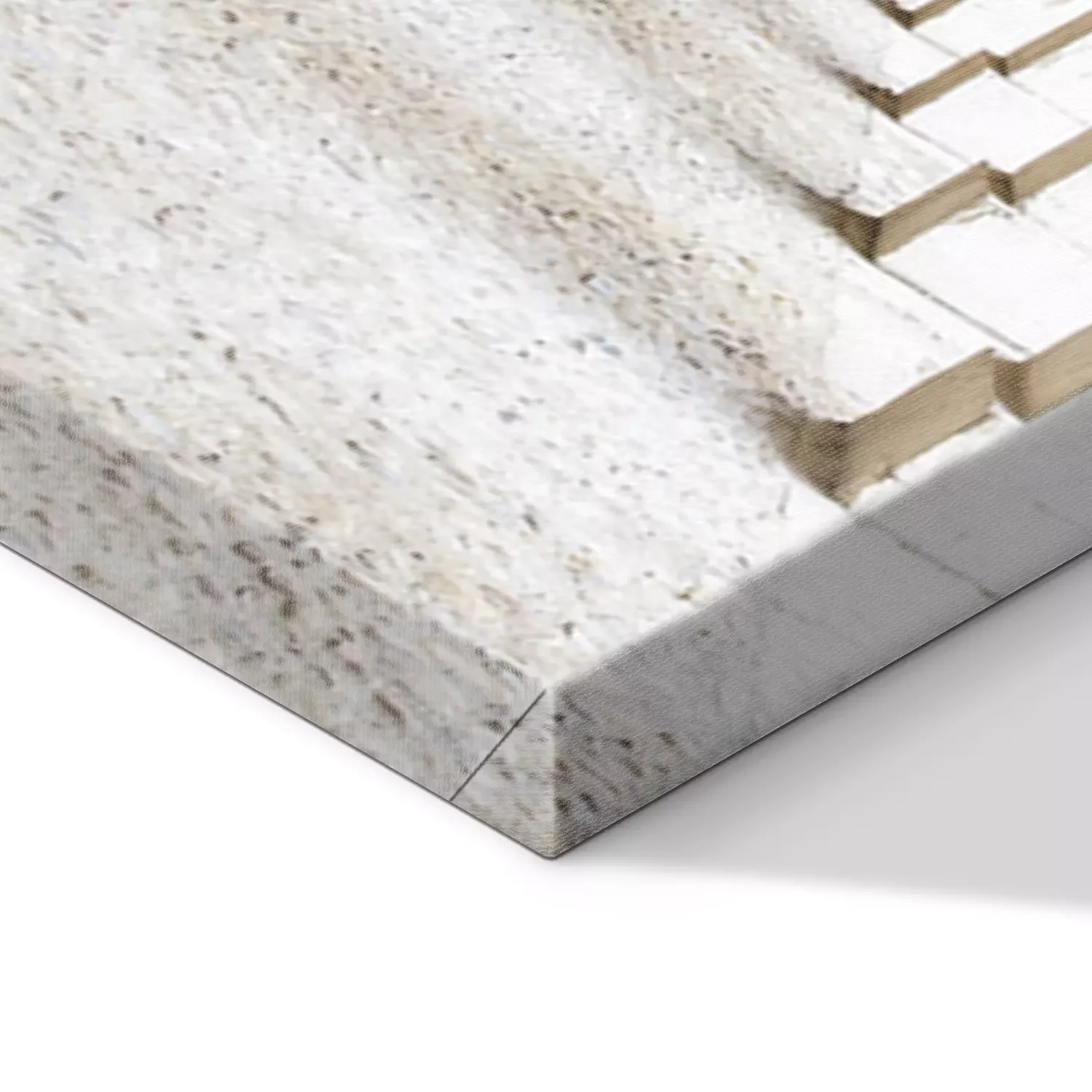 De print wordt aangebracht op hoogwaardig canvas dat op een schildersweefgetouw (spieraam) wordt gespannen. Omdat de print de zijranden bedekt, hoeft het ontwerp niet met een extra kader te worden omlijst. Wij raden ook composities aan die uit meerdere foto's bestaan en zo een coherente compositie vormen.
