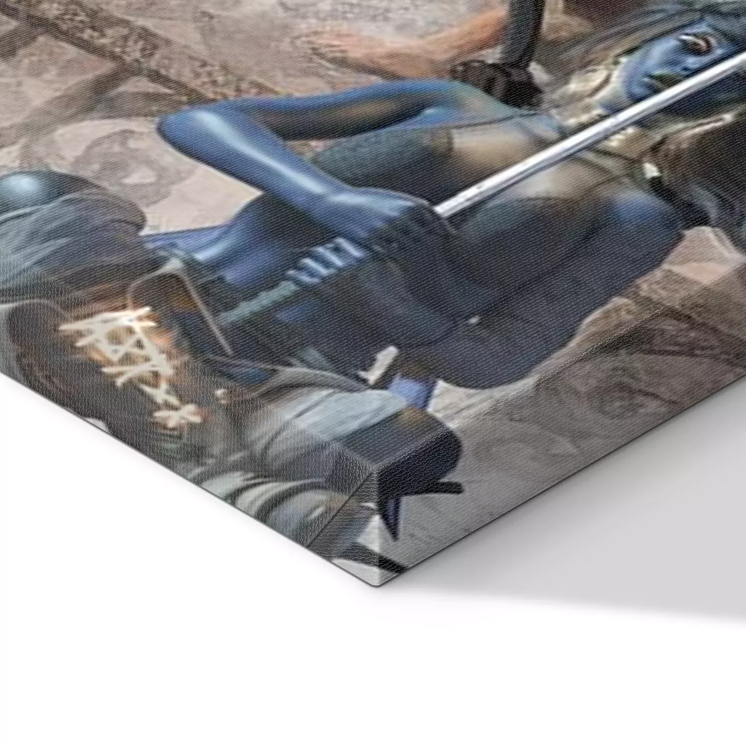 De print wordt aangebracht op hoogwaardig canvas dat op een schildersweefgetouw (spieraam) wordt gespannen. Omdat de print de zijranden bedekt, hoeft het ontwerp niet met een extra kader te worden omlijst. Wij raden ook composities aan die uit meerdere foto's bestaan en zo een coherente compositie vormen.