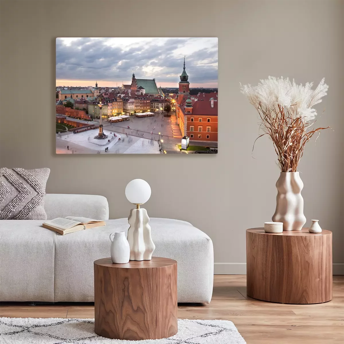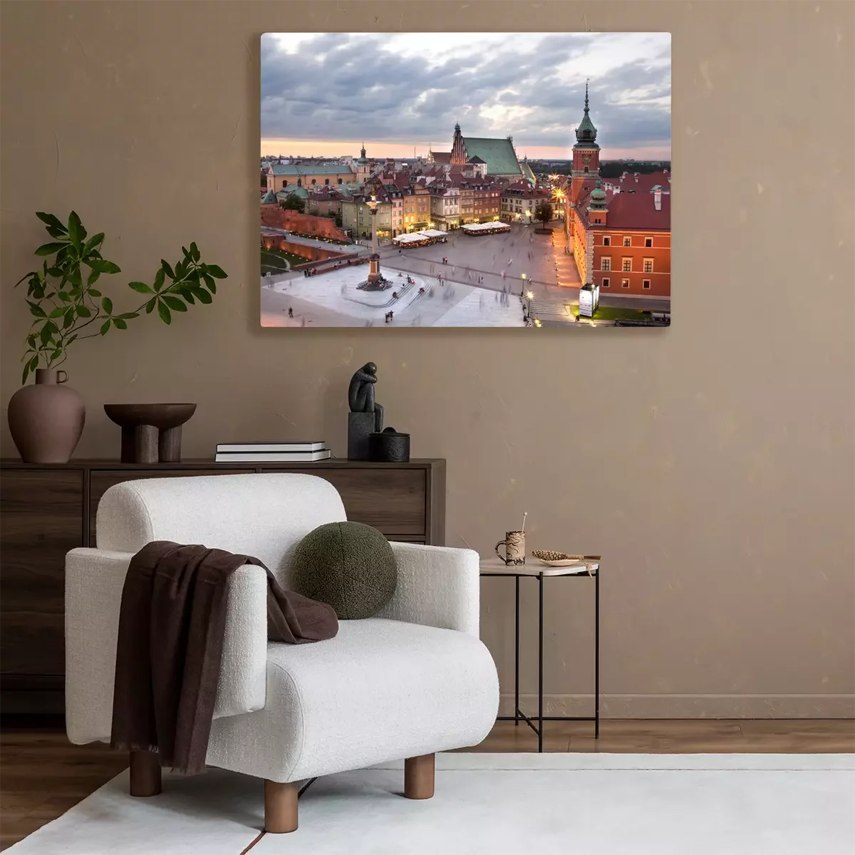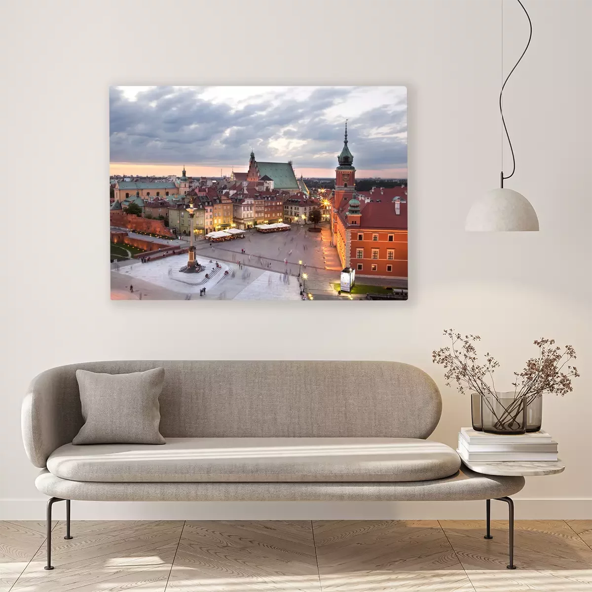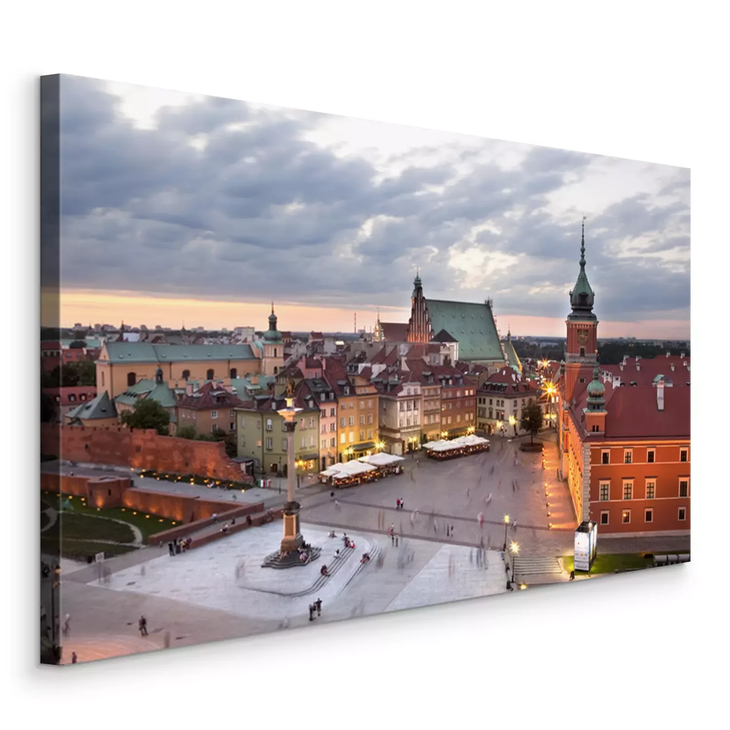 Canvas Koninklijk Kasteel plein in Warschau oude stad, in de schemering. Polen