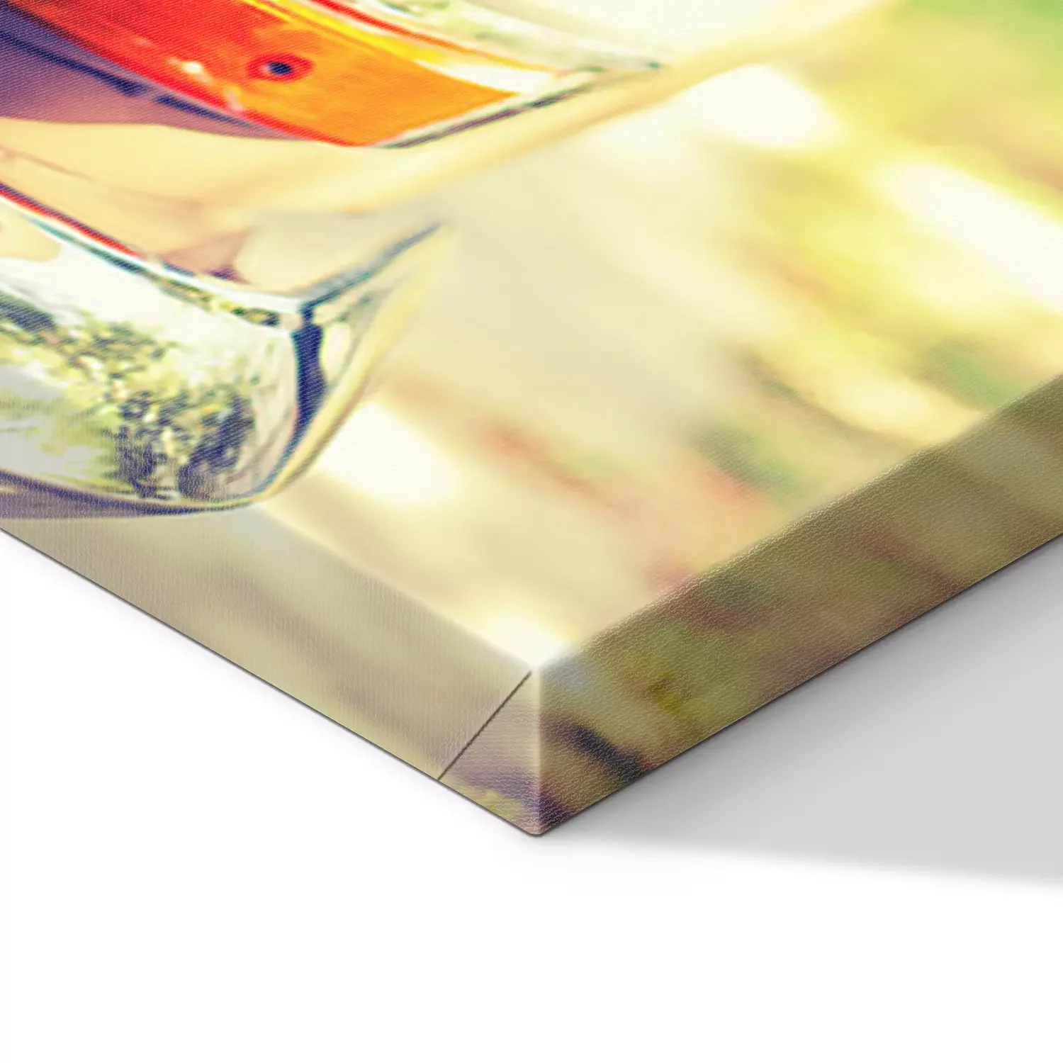 De print wordt aangebracht op hoogwaardig canvas dat op een schildersweefgetouw (spieraam) wordt gespannen. Omdat de print de zijranden bedekt, hoeft het ontwerp niet met een extra kader te worden omlijst. Wij raden ook composities aan die uit meerdere foto's bestaan en zo een coherente compositie vormen.