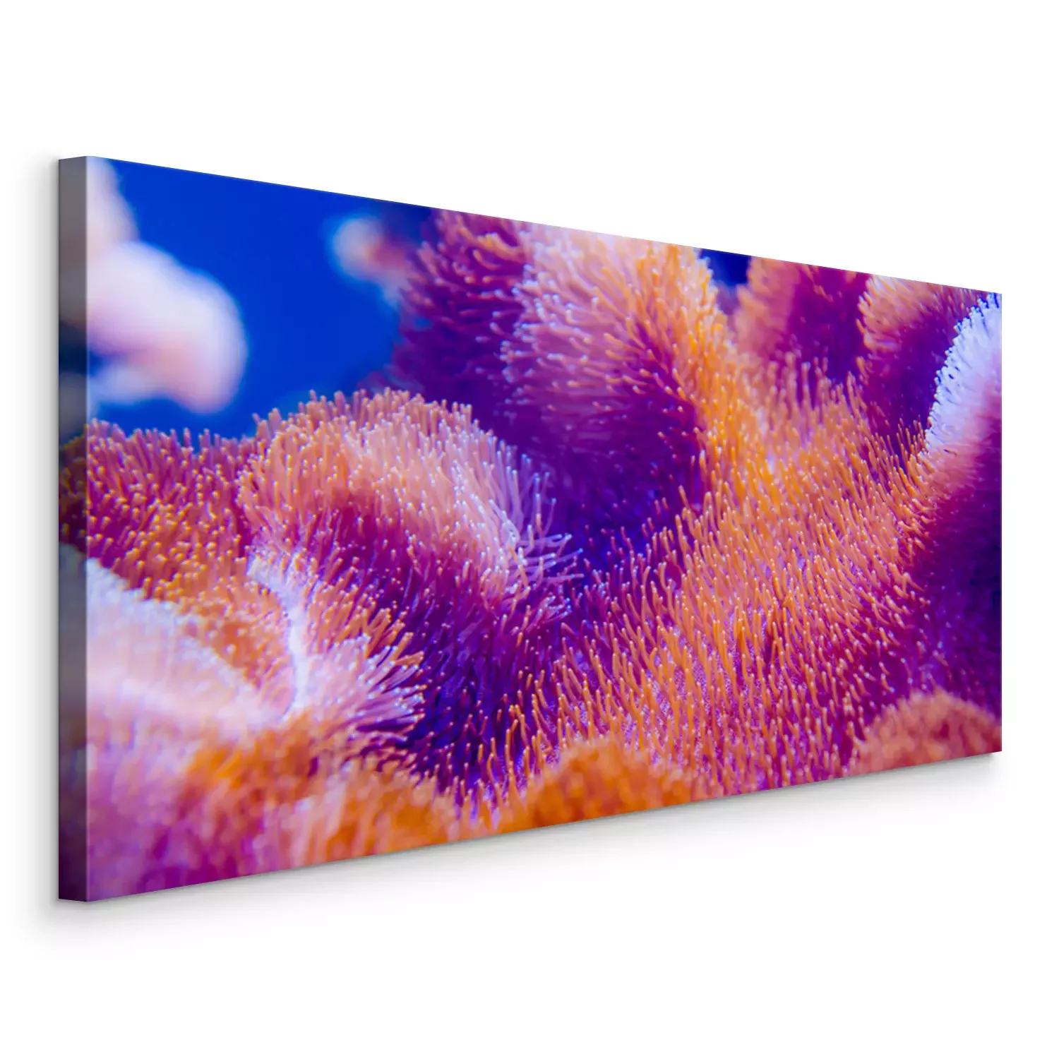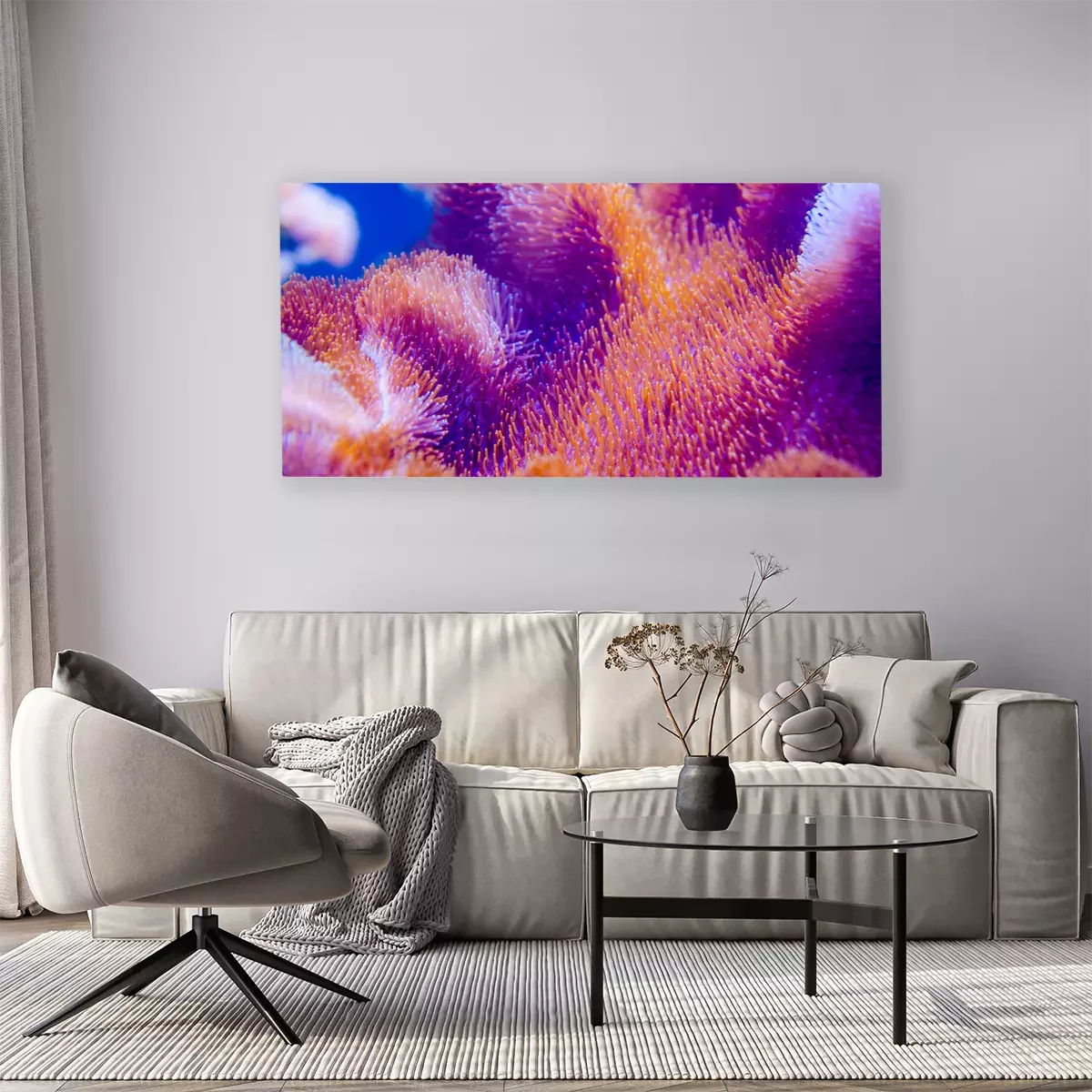 De print wordt aangebracht op hoogwaardig canvas dat op een schildersweefgetouw (spieraam) wordt gespannen. Omdat de print de zijranden bedekt, hoeft het ontwerp niet met een extra kader te worden omlijst. Wij raden ook composities aan die uit meerdere foto's bestaan en zo een coherente compositie vormen.