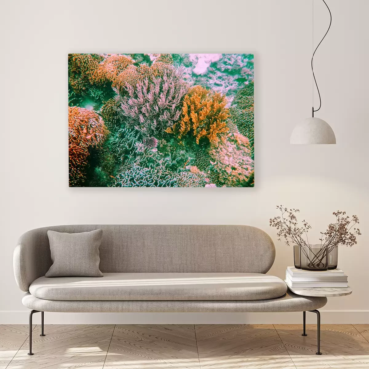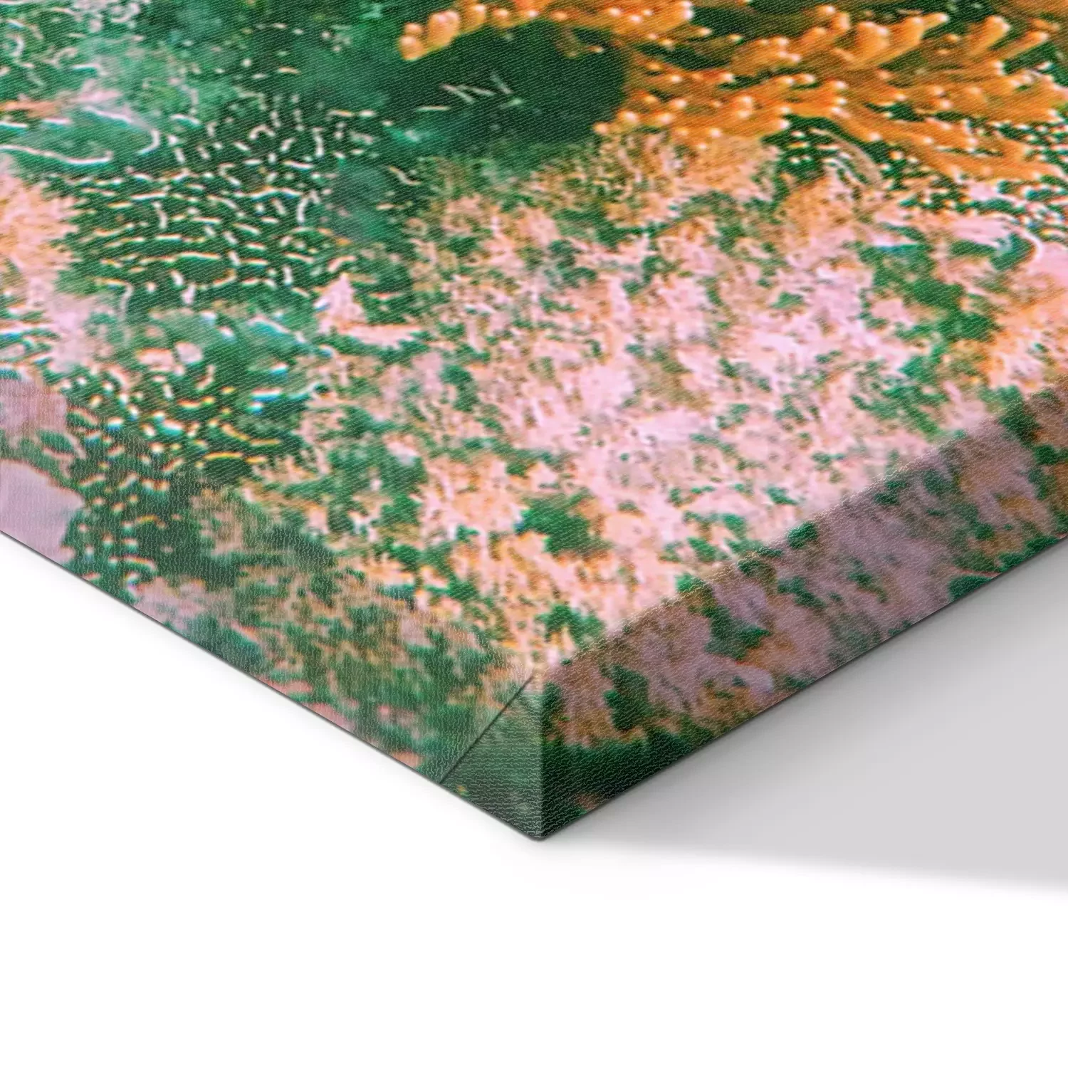 De print wordt aangebracht op hoogwaardig canvas dat op een schildersweefgetouw (spieraam) wordt gespannen. Omdat de print de zijranden bedekt, hoeft het ontwerp niet met een extra kader te worden omlijst. Wij raden ook composities aan die uit meerdere foto's bestaan en zo een coherente compositie vormen.