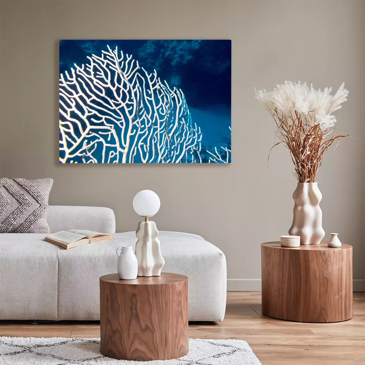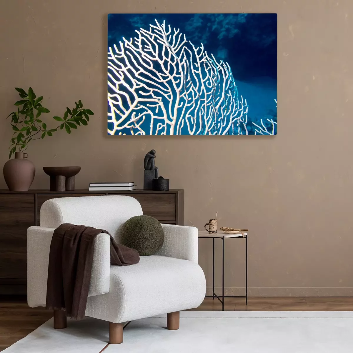 Canvas: Koraalrif met gorgonian op de bodem van tropische zee