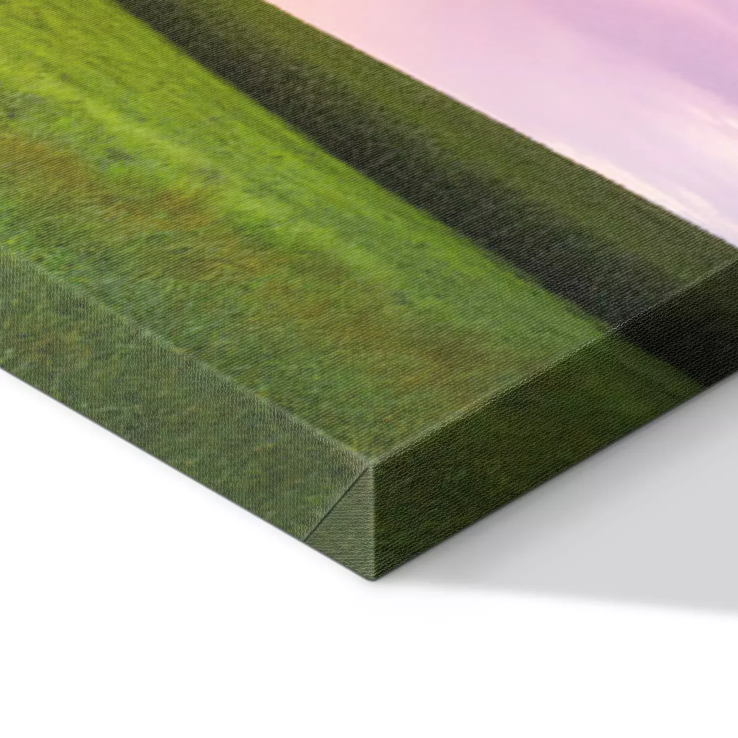 De print wordt aangebracht op hoogwaardig canvas dat op een schildersweefgetouw (spieraam) wordt gespannen. Omdat de print de zijranden bedekt, hoeft het ontwerp niet met een extra kader te worden omlijst. Wij raden ook composities aan die uit meerdere foto's bestaan en zo een coherente compositie vormen.