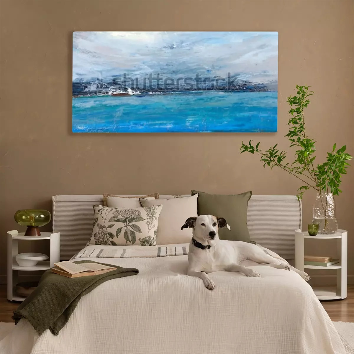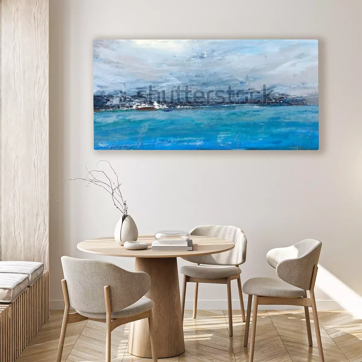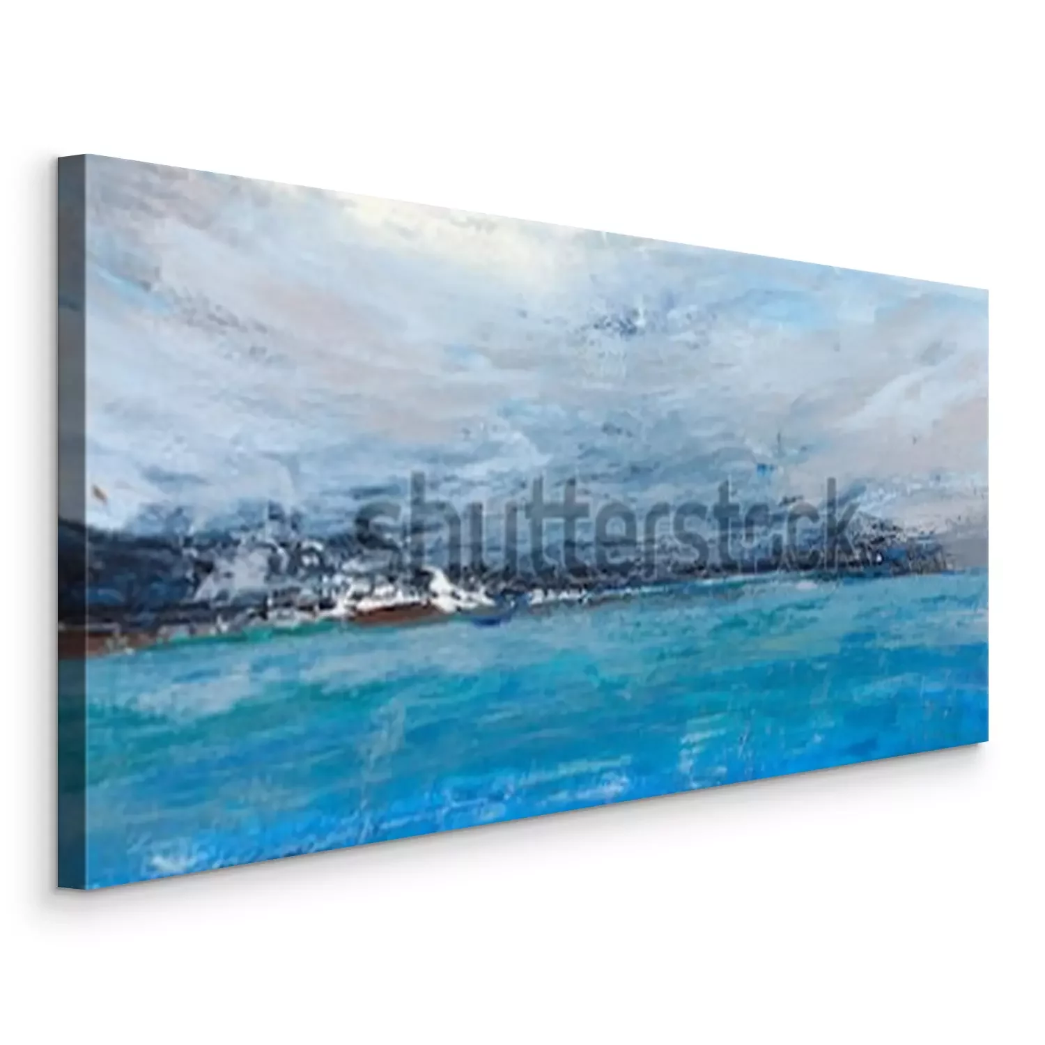 Canvas Koude oceaan, landschap met de zee, ruw land. Kunst ondertekenen, kunst ondertekenen