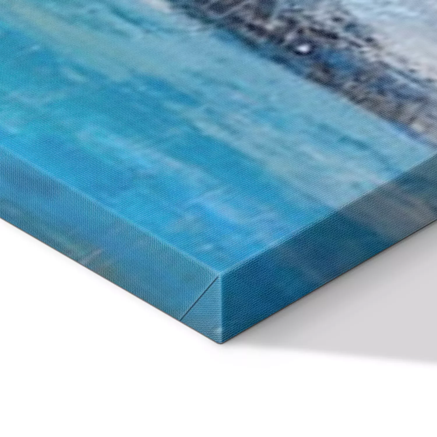 De print wordt aangebracht op hoogwaardig canvas dat op een schildersweefgetouw (spieraam) wordt gespannen. Omdat de print de zijranden bedekt, hoeft het ontwerp niet met een extra kader te worden omlijst. Wij raden ook composities aan die uit meerdere foto's bestaan en zo een coherente compositie vormen.
