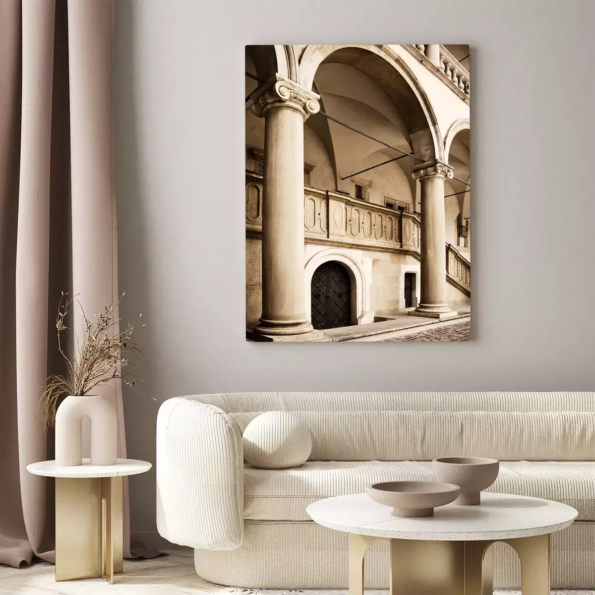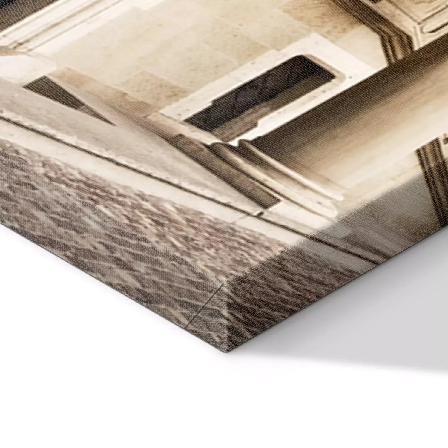 De print wordt aangebracht op hoogwaardig canvas dat op een schildersweefgetouw (spieraam) wordt gespannen. Omdat de print de zijranden bedekt, hoeft het ontwerp niet met een extra kader te worden omlijst. Wij raden ook composities aan die uit meerdere foto's bestaan en zo een coherente compositie vormen.