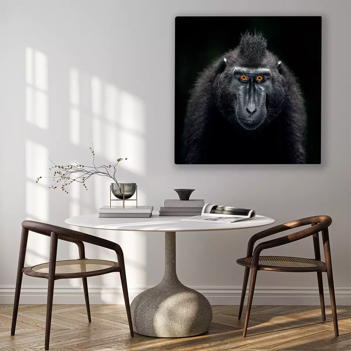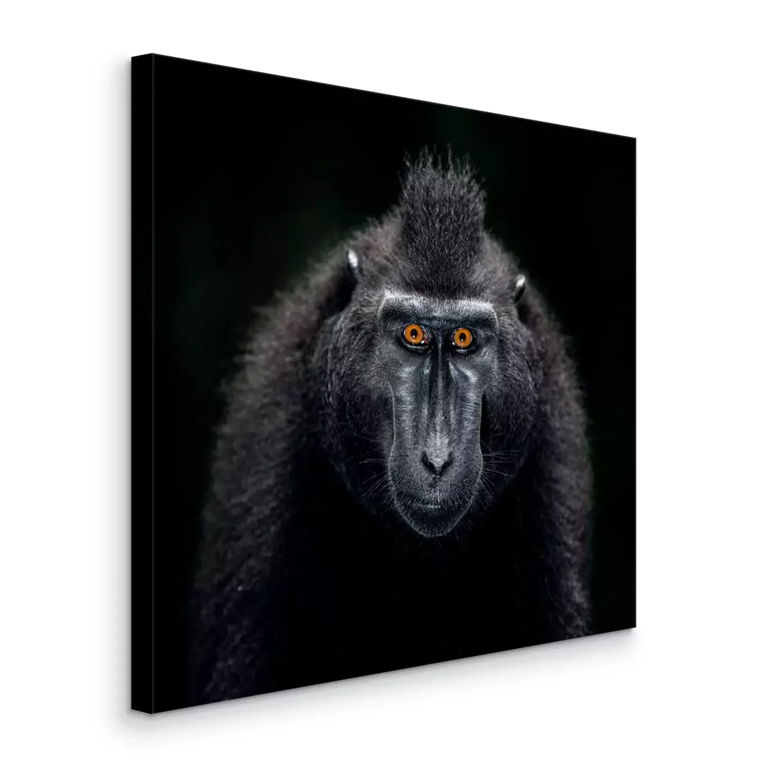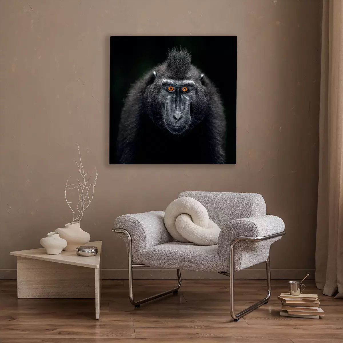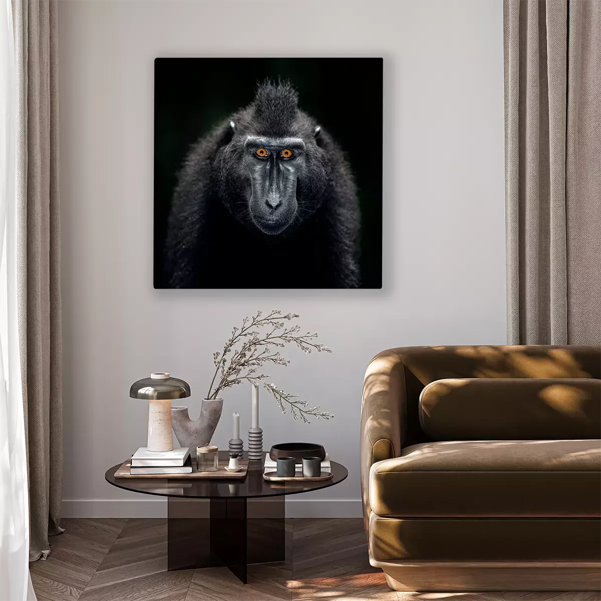 Canvas: Kuifmakaak op een zwarte achtergrond