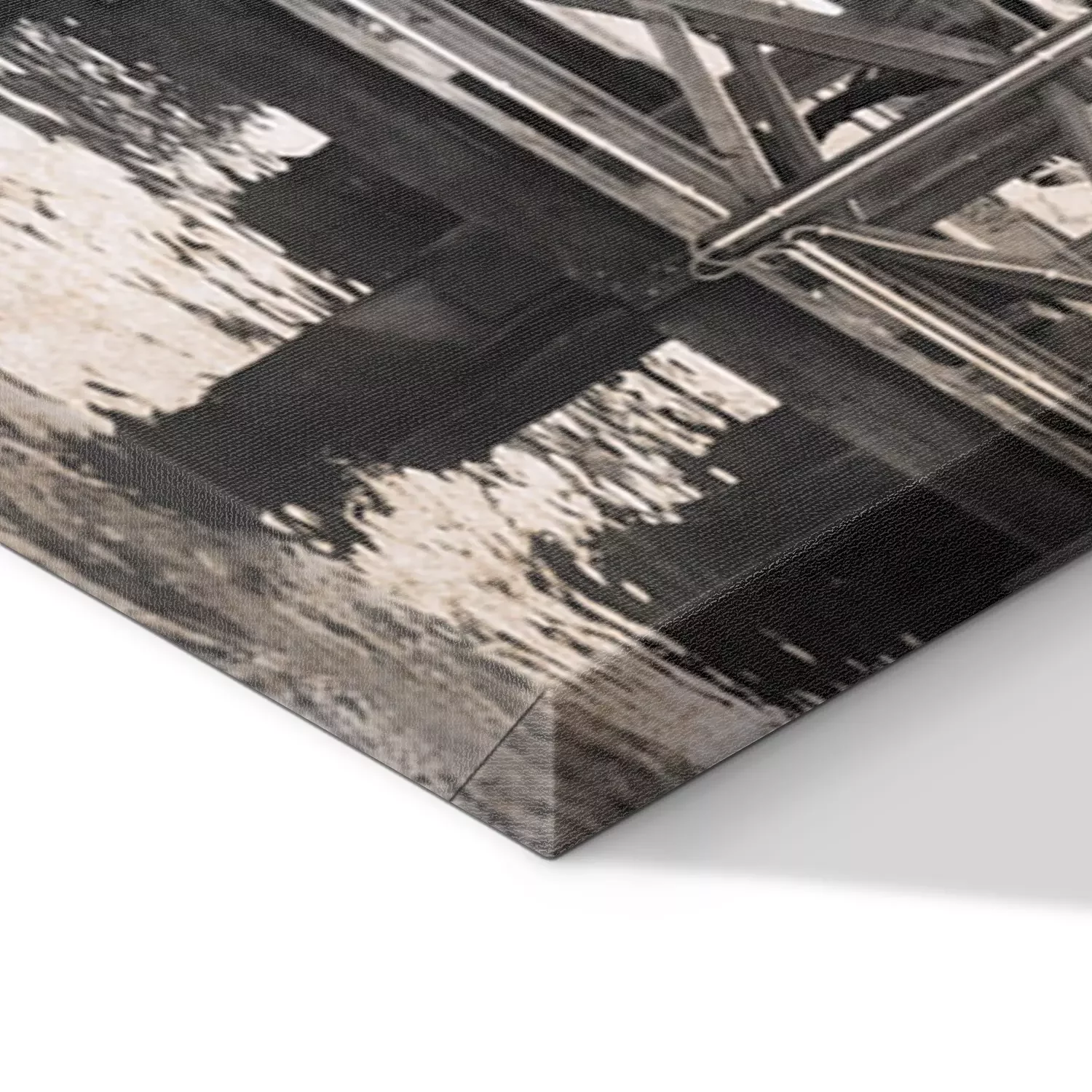 De print wordt aangebracht op hoogwaardig canvas dat op een schildersweefgetouw (spieraam) wordt gespannen. Omdat de print de zijranden bedekt, hoeft het ontwerp niet met een extra kader te worden omlijst. Wij raden ook composities aan die uit meerdere foto's bestaan en zo een coherente compositie vormen.