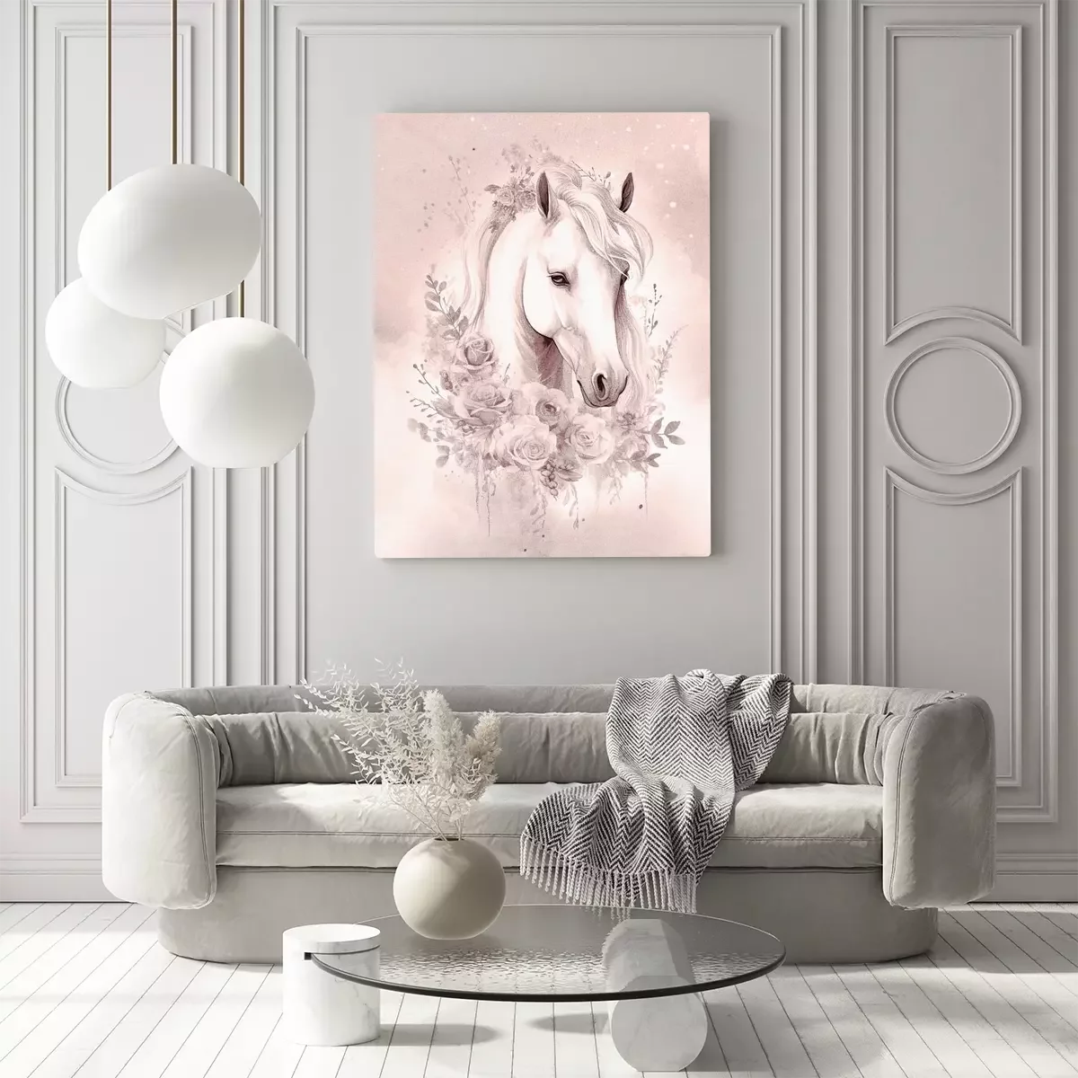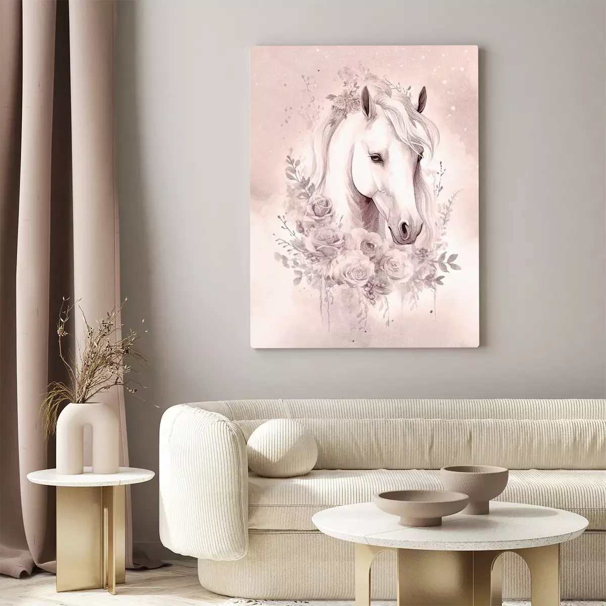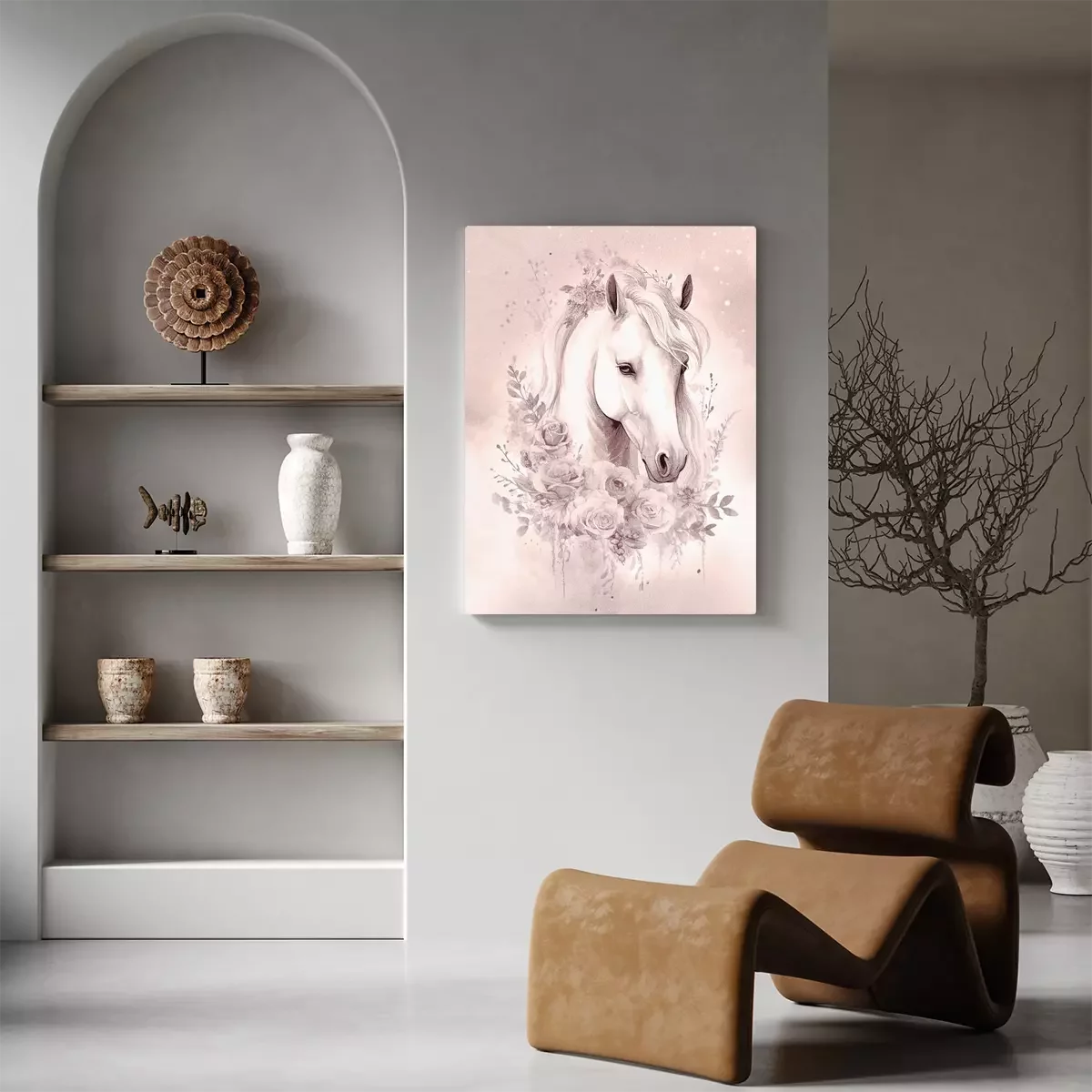 Kunstzinnig paardenhoofd met bloemendecoratie