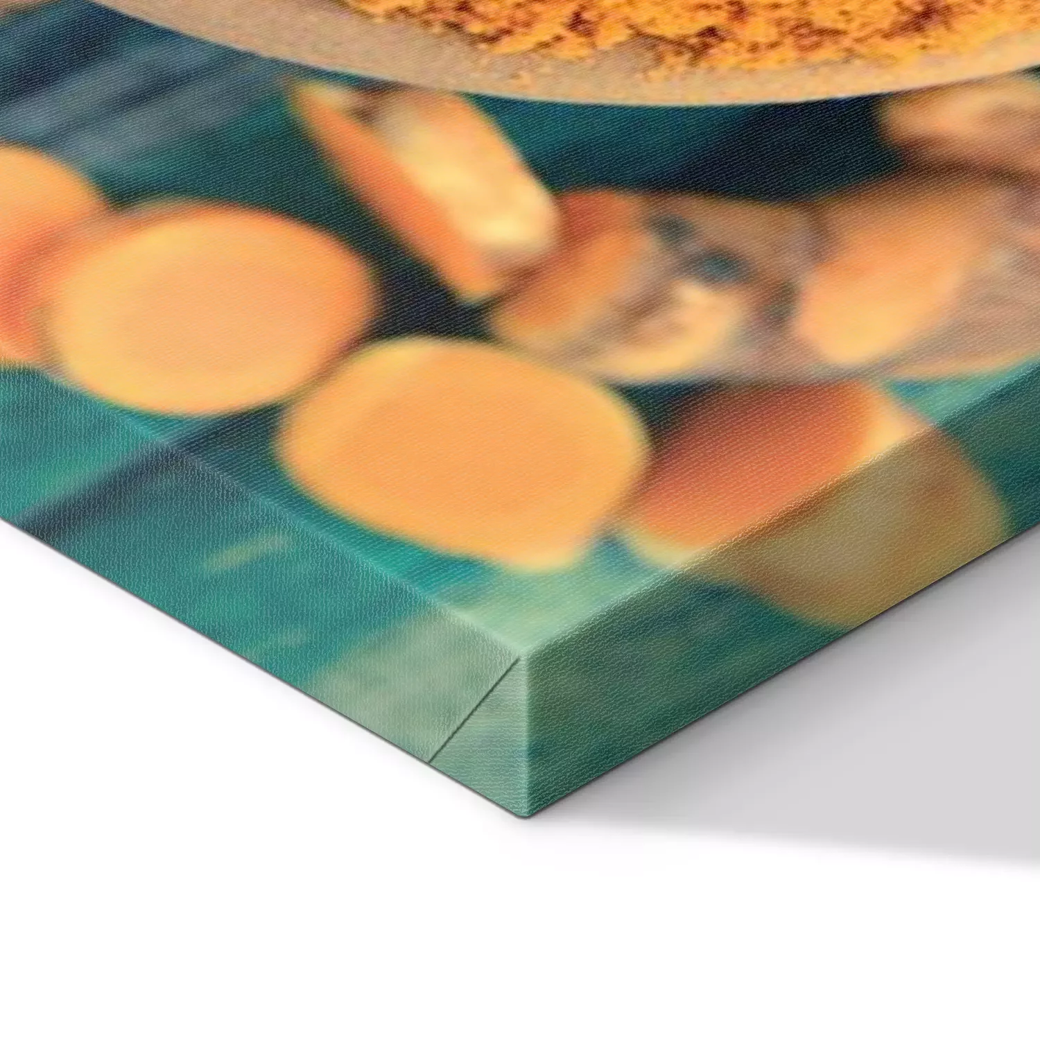 De print wordt aangebracht op hoogwaardig canvas dat op een schildersweefgetouw (spieraam) wordt gespannen. Omdat de print de zijranden bedekt, hoeft het ontwerp niet met een extra kader te worden omlijst. Wij raden ook composities aan die uit meerdere foto's bestaan en zo een coherente compositie vormen.