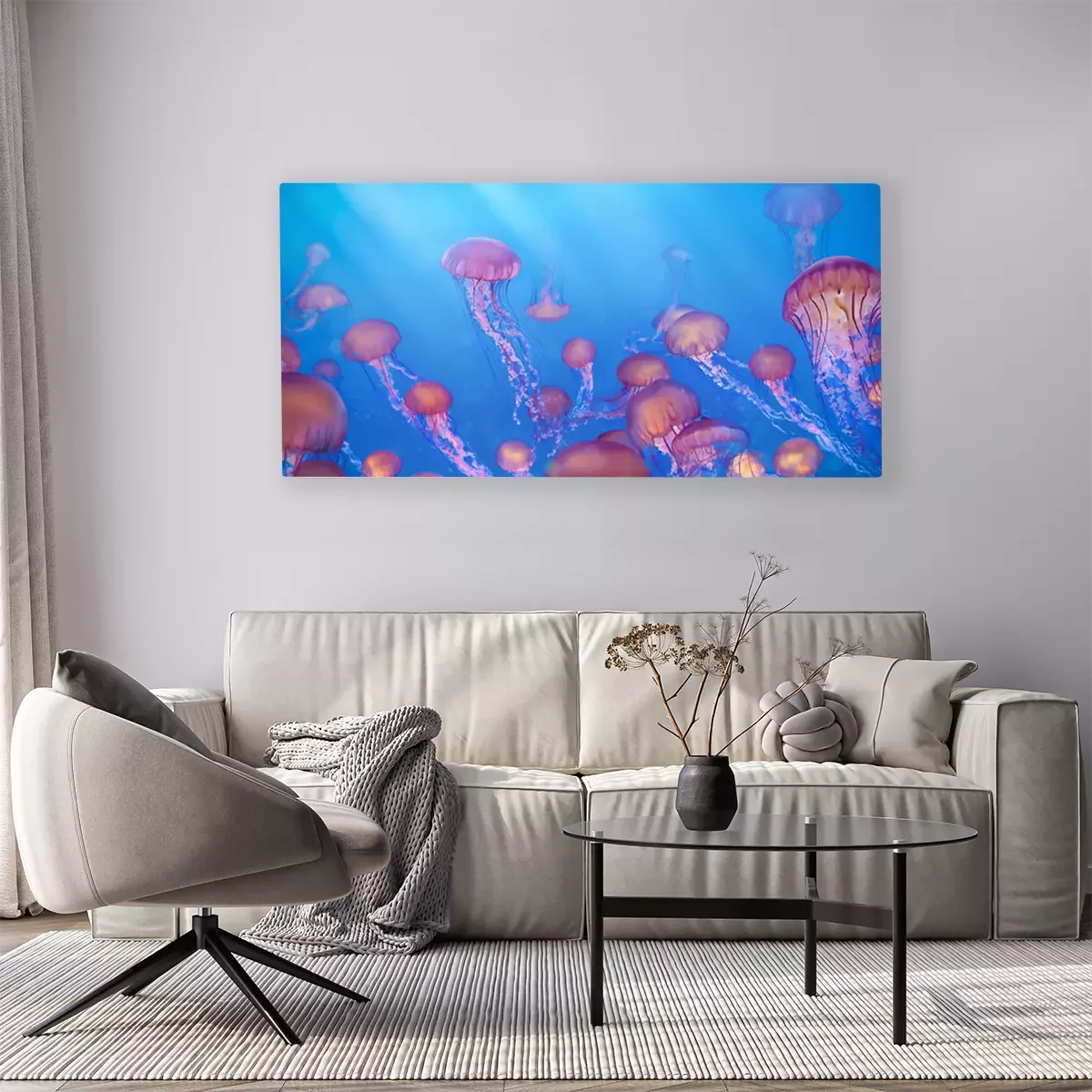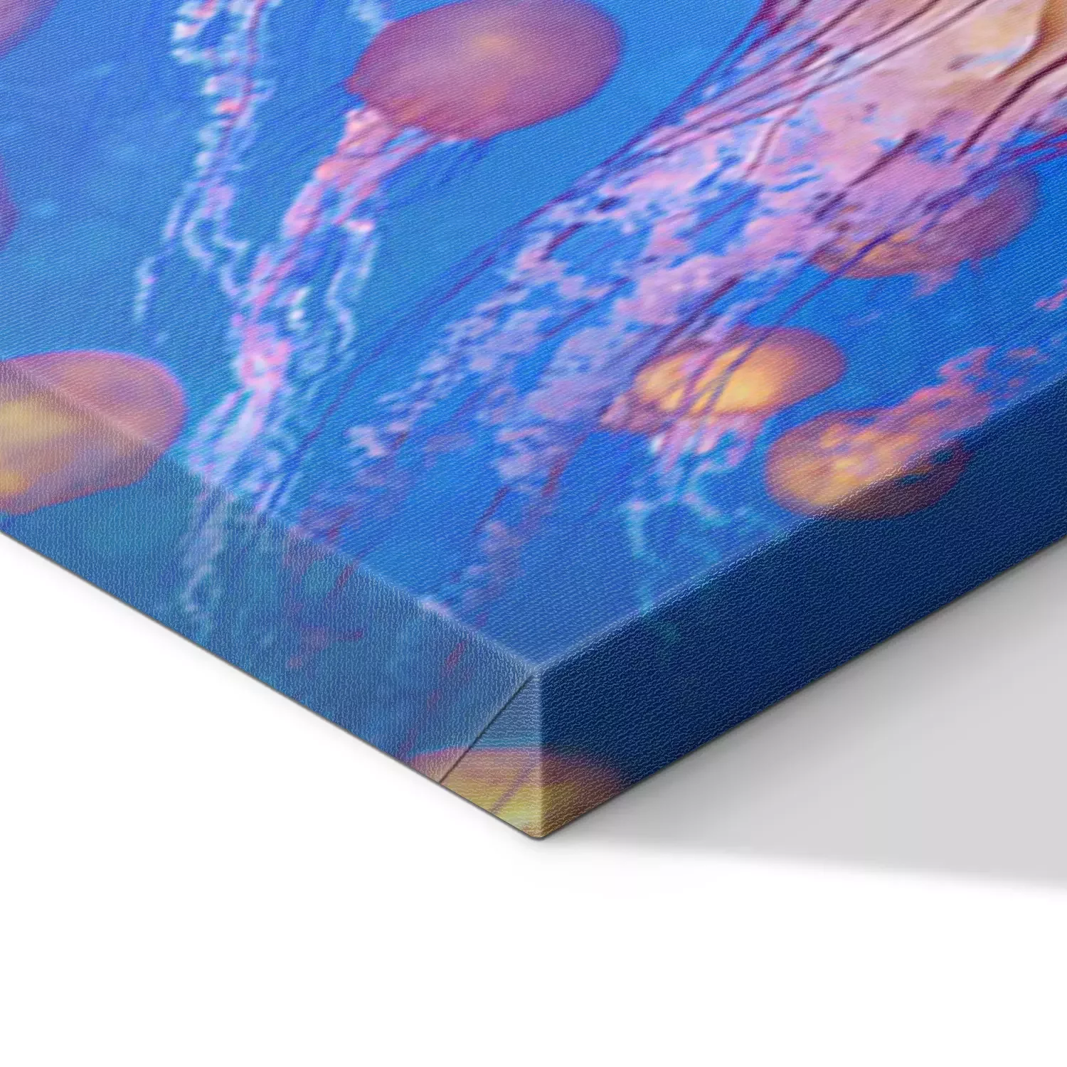 De print wordt aangebracht op hoogwaardig canvas dat op een schildersweefgetouw (spieraam) wordt gespannen. Omdat de print de zijranden bedekt, hoeft het ontwerp niet met een extra kader te worden omlijst. Wij raden ook composities aan die uit meerdere foto's bestaan en zo een coherente compositie vormen.