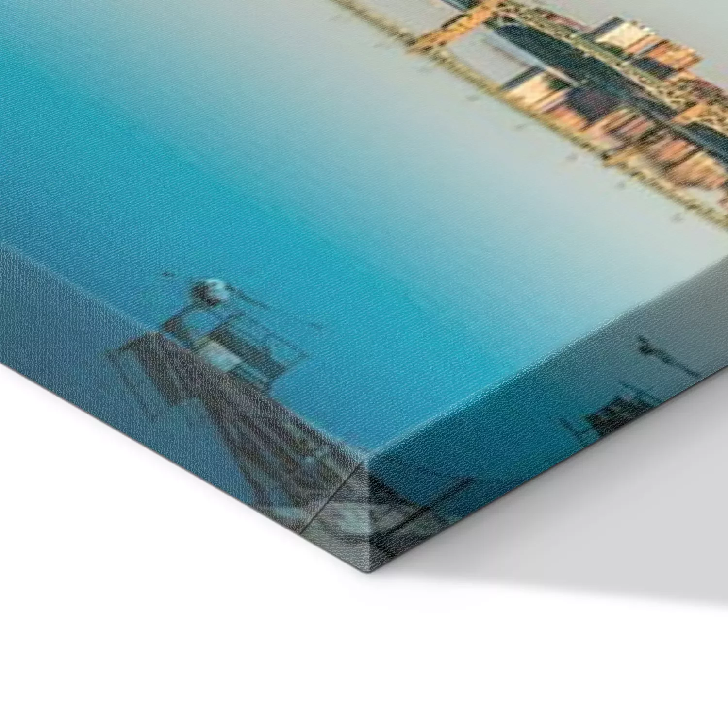 De print wordt aangebracht op hoogwaardig canvas dat op een schildersweefgetouw (spieraam) wordt gespannen. Omdat de print de zijranden bedekt, hoeft het ontwerp niet met een extra kader te worden omlijst. Wij raden ook composities aan die uit meerdere foto's bestaan en zo een coherente compositie vormen.