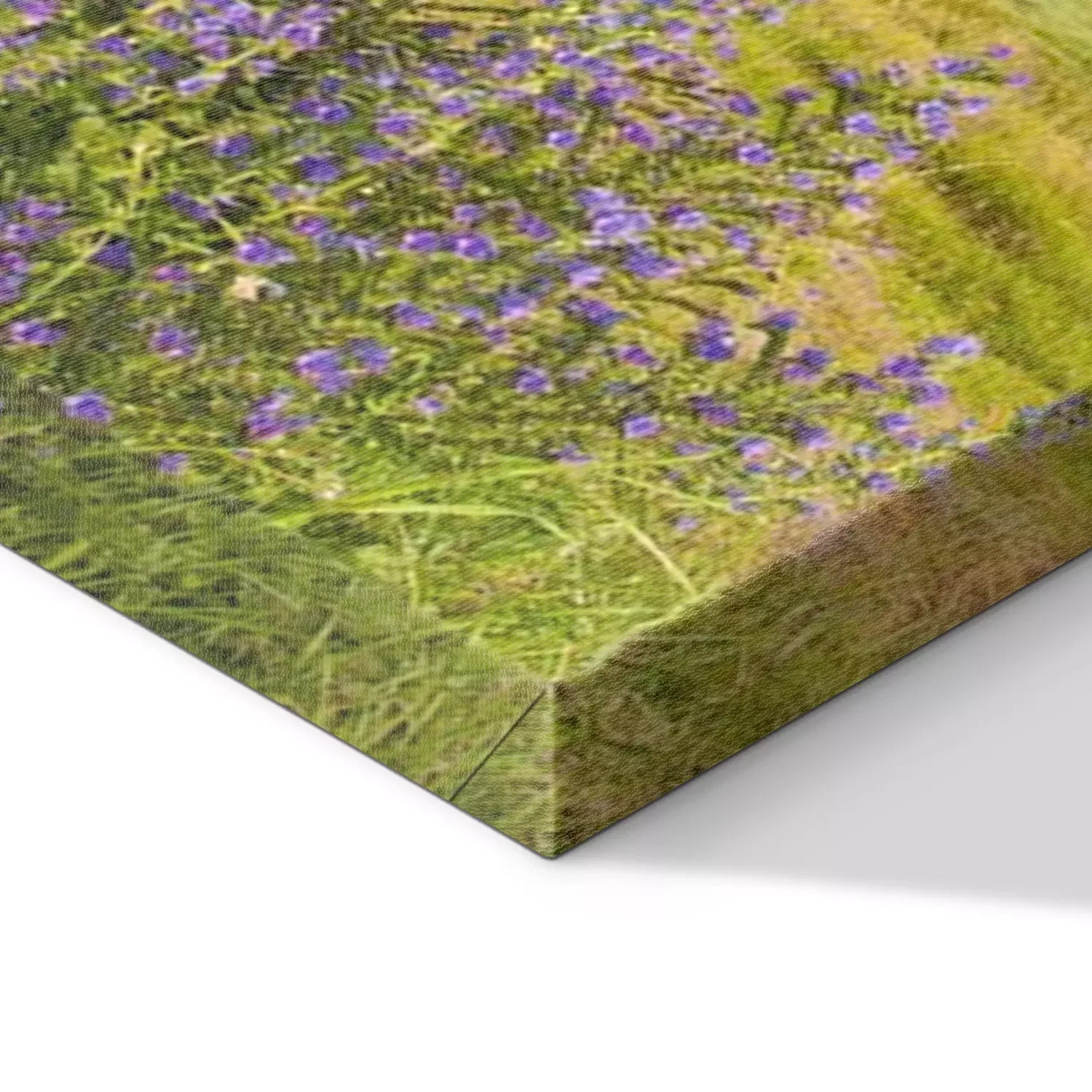 De print wordt aangebracht op hoogwaardig canvas dat op een schildersweefgetouw (spieraam) wordt gespannen. Omdat de print de zijranden bedekt, hoeft het ontwerp niet met een extra kader te worden omlijst. Wij raden ook composities aan die uit meerdere foto's bestaan en zo een coherente compositie vormen.