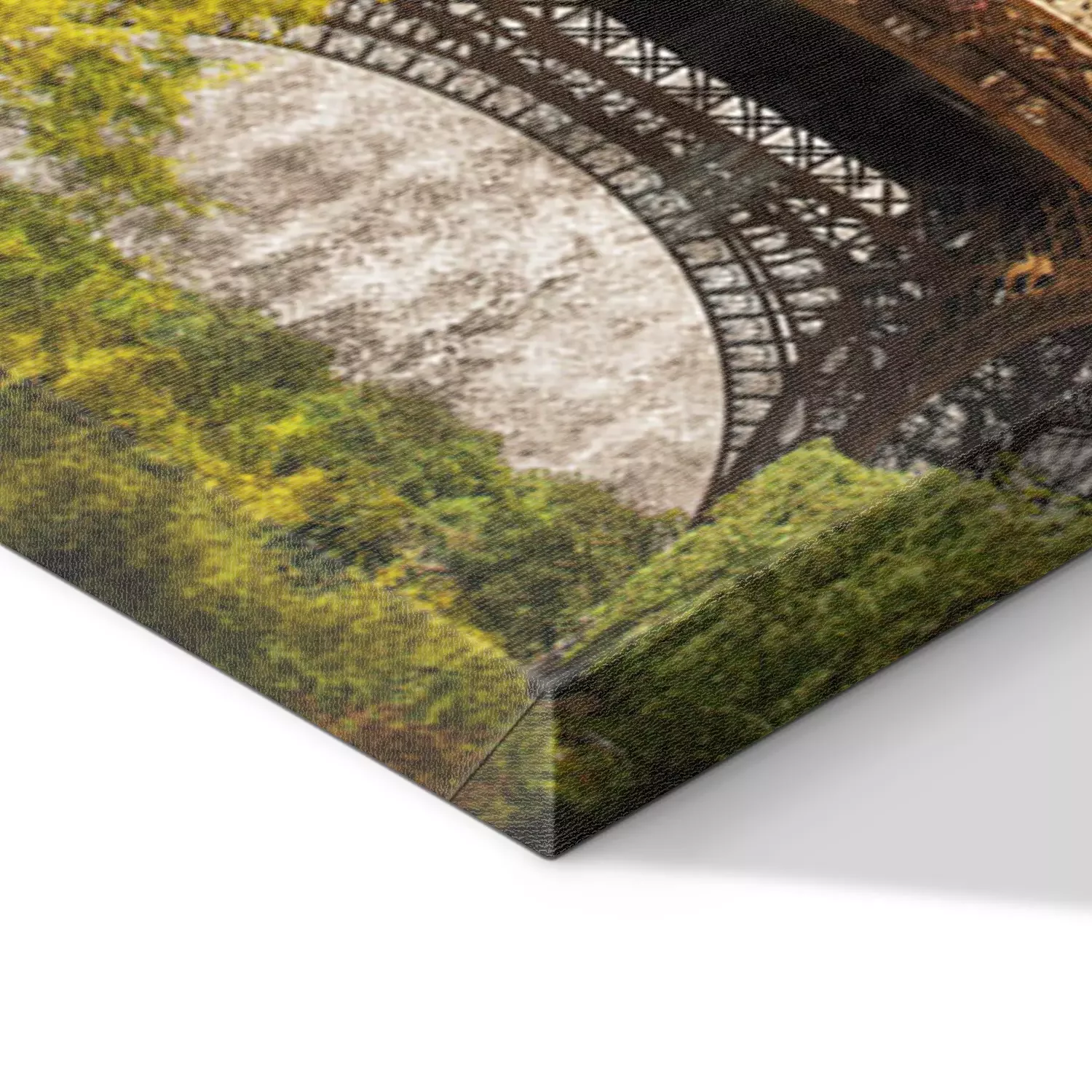 De print wordt aangebracht op hoogwaardig canvas dat op een schildersweefgetouw (spieraam) wordt gespannen. Omdat de print de zijranden bedekt, hoeft het ontwerp niet met een extra kader te worden omlijst. Wij raden ook composities aan die uit meerdere foto's bestaan en zo een coherente compositie vormen.