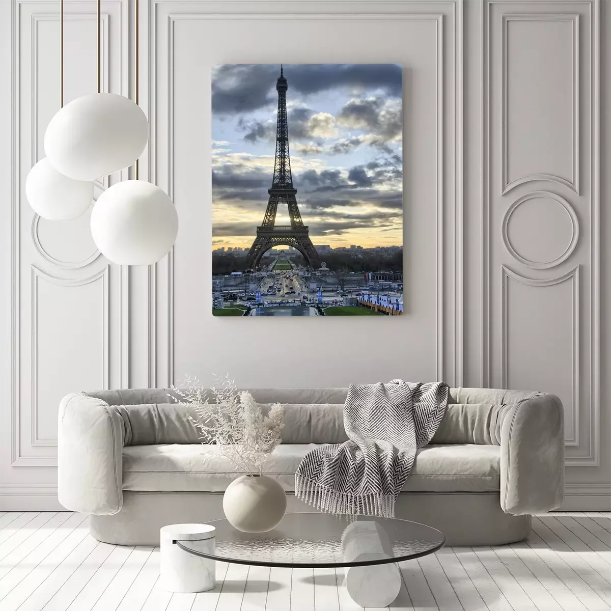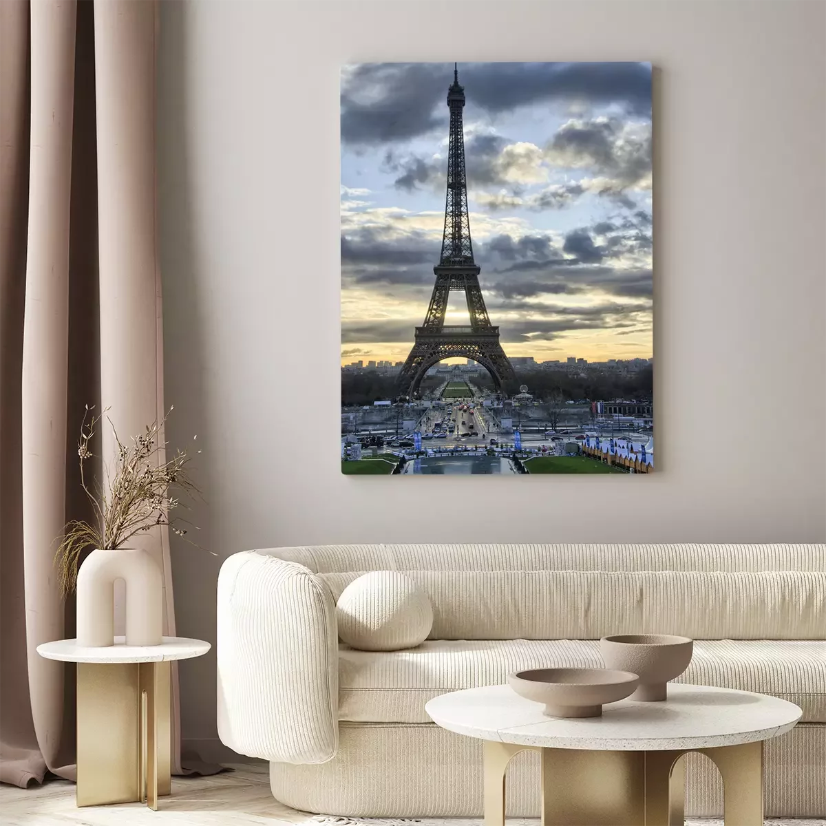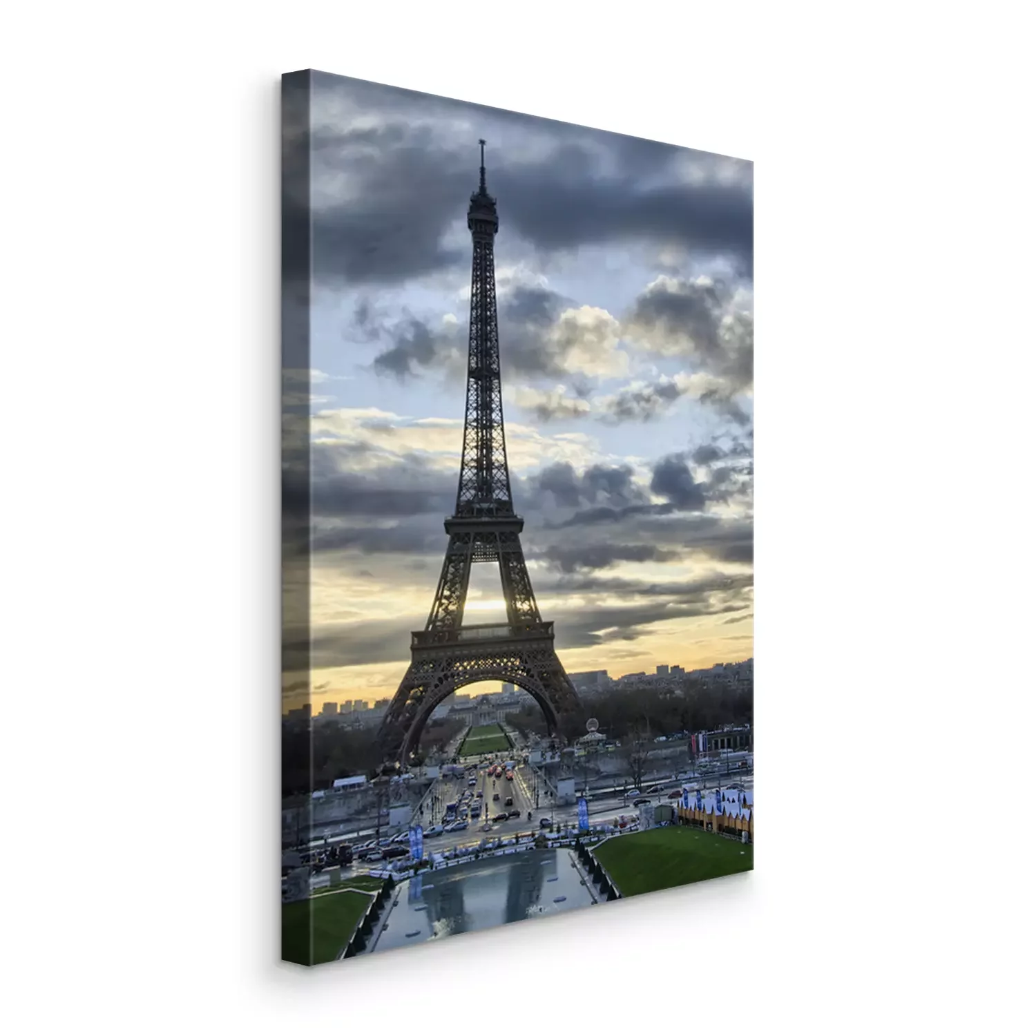 Canvas: La Tour Eiffel - Winter zonsopkomst in Parijs bij de Eiffeltoren, uitzicht f