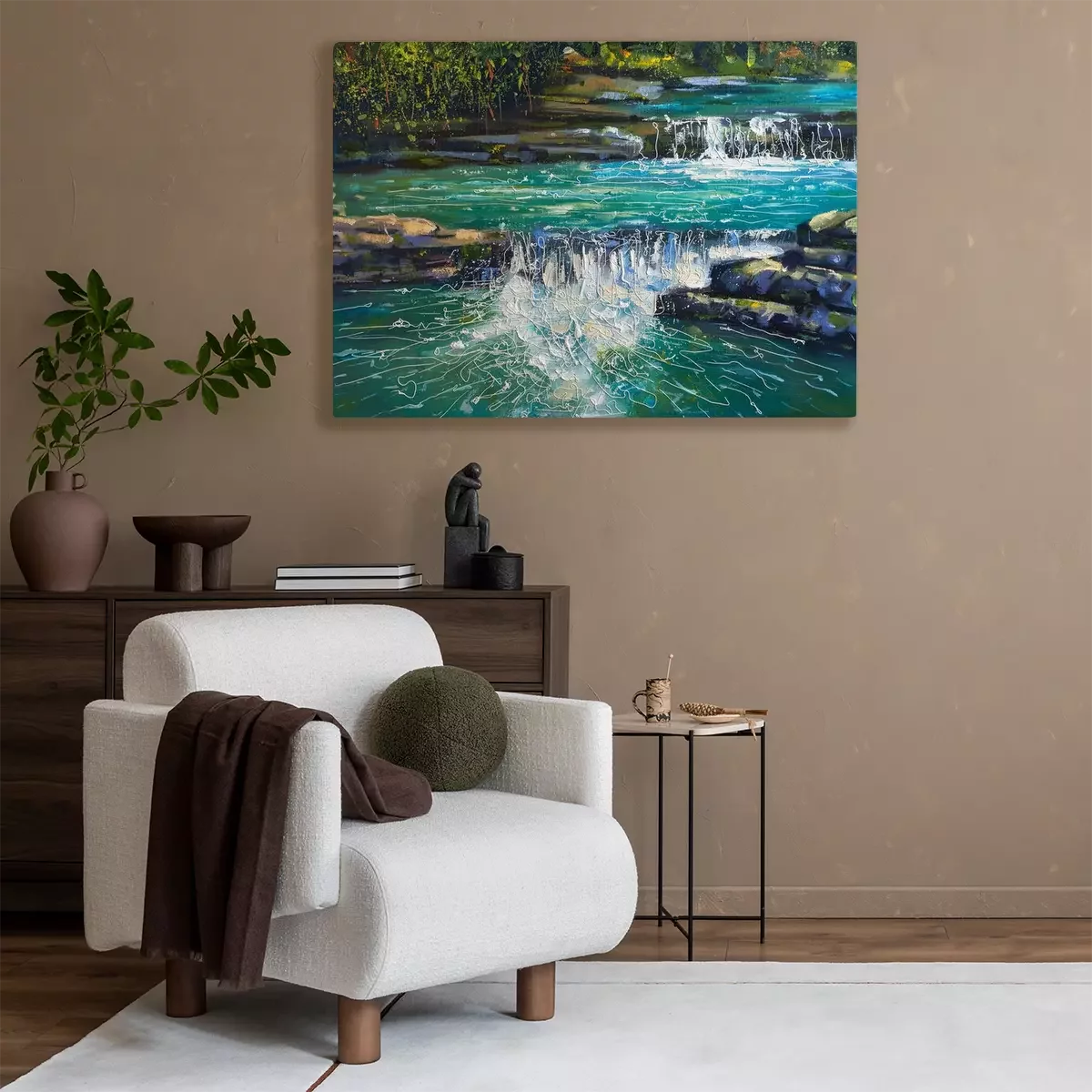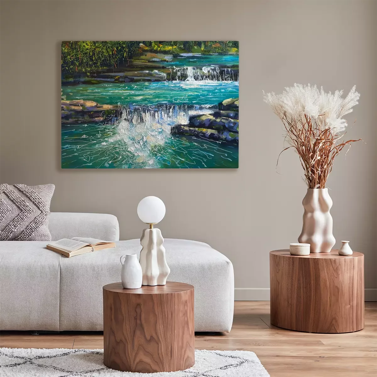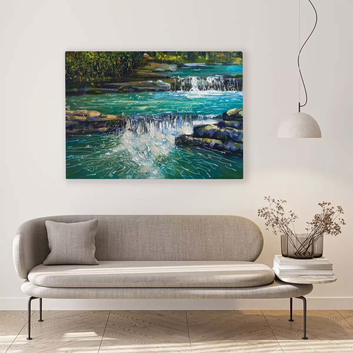 De print wordt aangebracht op hoogwaardig canvas dat op een schildersweefgetouw (spieraam) wordt gespannen. Omdat de print de zijranden bedekt, hoeft het ontwerp niet met een extra kader te worden omlijst. Wij raden ook composities aan die uit meerdere foto's bestaan en zo een coherente compositie vormen.