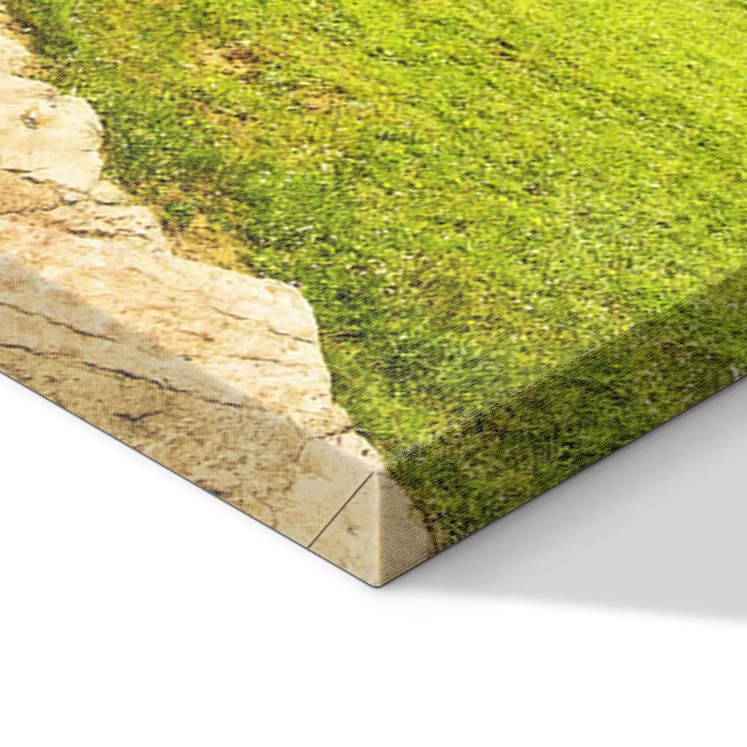 De print wordt aangebracht op hoogwaardig canvas dat op een schildersweefgetouw (spieraam) wordt gespannen. Omdat de print de zijranden bedekt, hoeft het ontwerp niet met een extra kader te worden omlijst. Wij raden ook composities aan die uit meerdere foto's bestaan en zo een coherente compositie vormen.