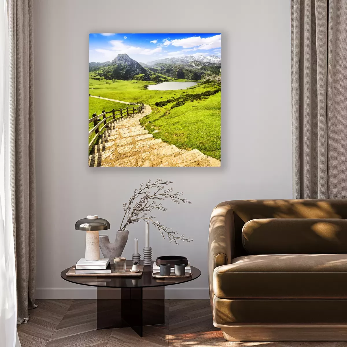 Canvas Lake Ercina, een van de meren van Covadonga, Asturië, Spanje.