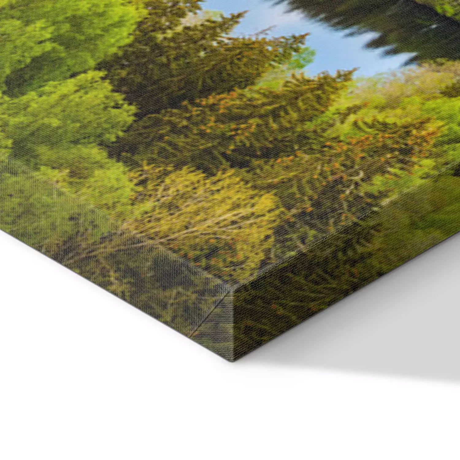 De print wordt aangebracht op hoogwaardig canvas dat op een schildersweefgetouw (spieraam) wordt gespannen. Omdat de print de zijranden bedekt, hoeft het ontwerp niet met een extra kader te worden omlijst. Wij raden ook composities aan die uit meerdere foto's bestaan en zo een coherente compositie vormen.