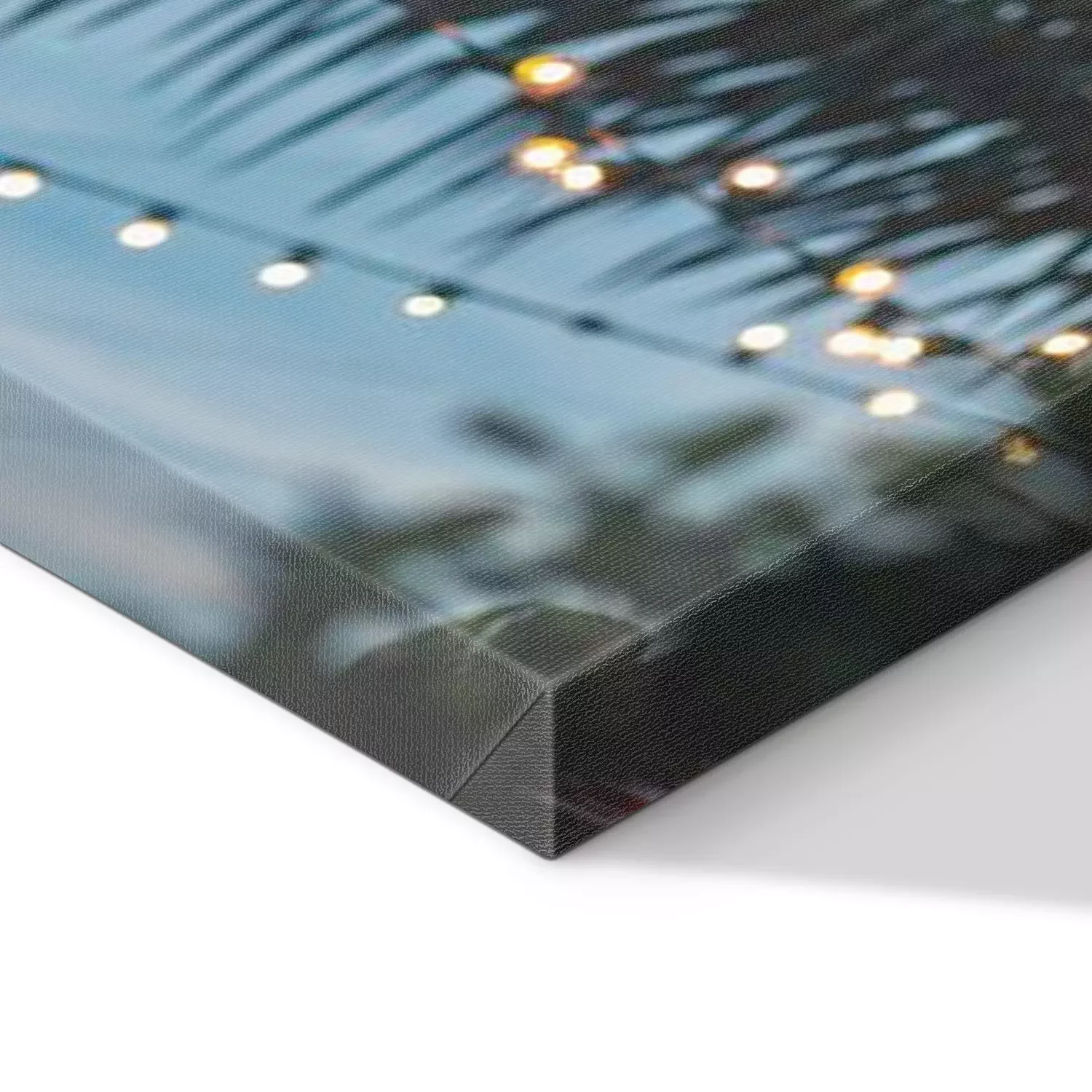 De print wordt aangebracht op hoogwaardig canvas dat op een schildersweefgetouw (spieraam) wordt gespannen. Omdat de print de zijranden bedekt, hoeft het ontwerp niet met een extra kader te worden omlijst. Wij raden ook composities aan die uit meerdere foto's bestaan en zo een coherente compositie vormen.