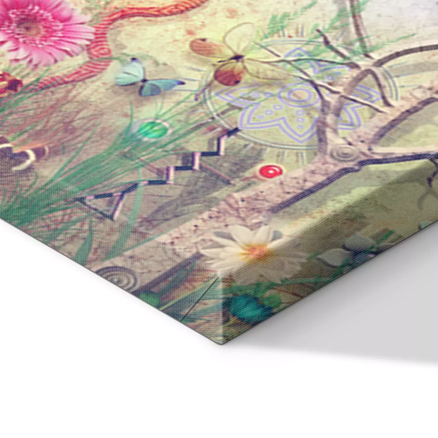 De print wordt aangebracht op hoogwaardig canvas dat op een schildersweefgetouw (spieraam) wordt gespannen. Omdat de print de zijranden bedekt, hoeft het ontwerp niet met een extra kader te worden omlijst. Wij raden ook composities aan die uit meerdere foto's bestaan en zo een coherente compositie vormen.