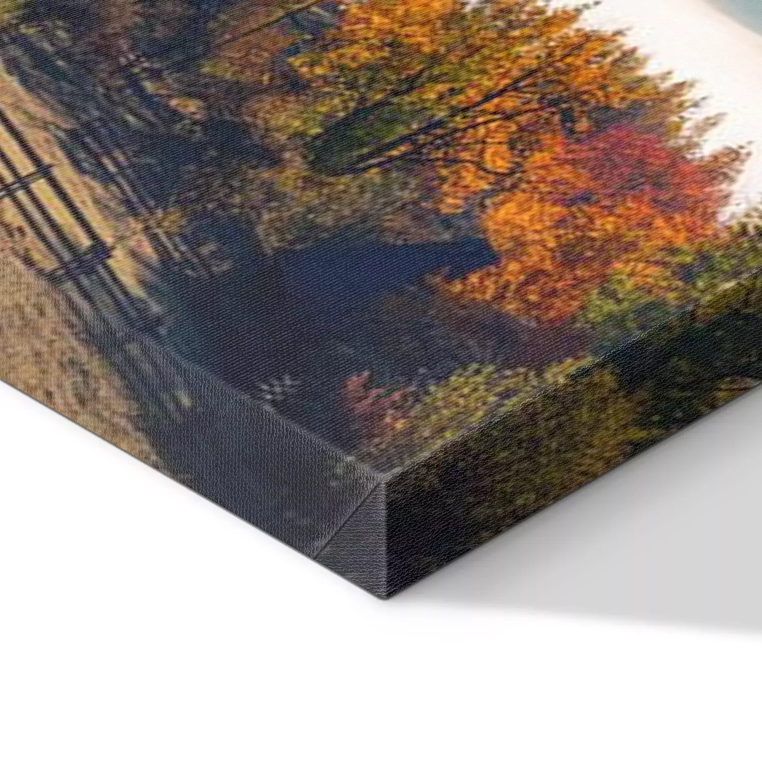 De print wordt aangebracht op hoogwaardig canvas dat op een schildersweefgetouw (spieraam) wordt gespannen. Omdat de print de zijranden bedekt, hoeft het ontwerp niet met een extra kader te worden omlijst. Wij raden ook composities aan die uit meerdere foto's bestaan en zo een coherente compositie vormen.
