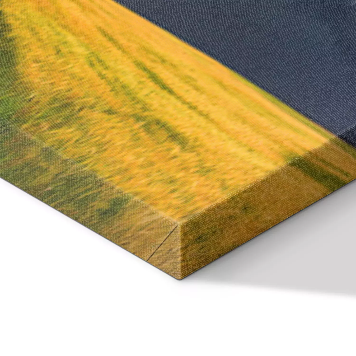 De print wordt aangebracht op hoogwaardig canvas dat op een schildersweefgetouw (spieraam) wordt gespannen. Omdat de print de zijranden bedekt, hoeft het ontwerp niet met een extra kader te worden omlijst. Wij raden ook composities aan die uit meerdere foto's bestaan en zo een coherente compositie vormen.