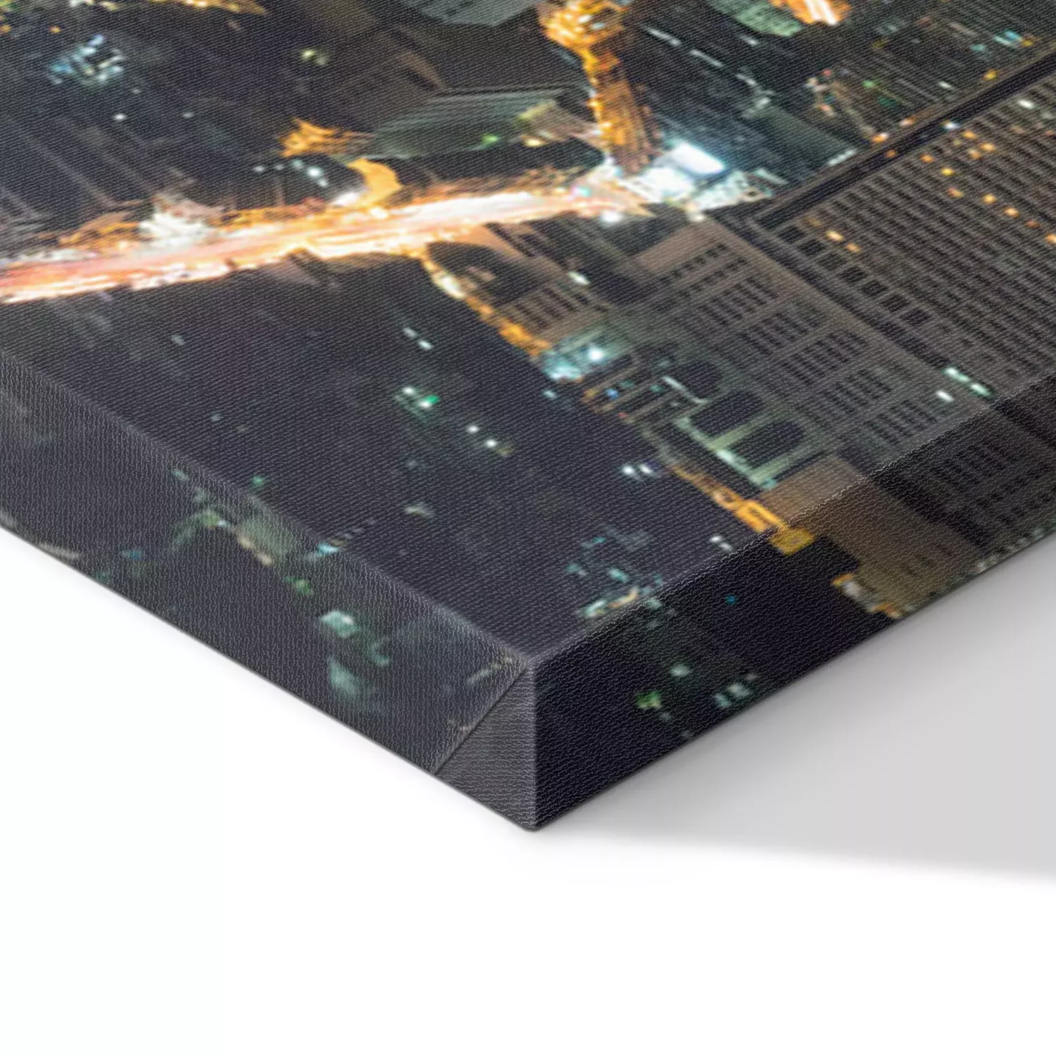 De print wordt aangebracht op hoogwaardig canvas dat op een schildersweefgetouw (spieraam) wordt gespannen. Omdat de print de zijranden bedekt, hoeft het ontwerp niet met een extra kader te worden omlijst. Wij raden ook composities aan die uit meerdere foto's bestaan en zo een coherente compositie vormen.