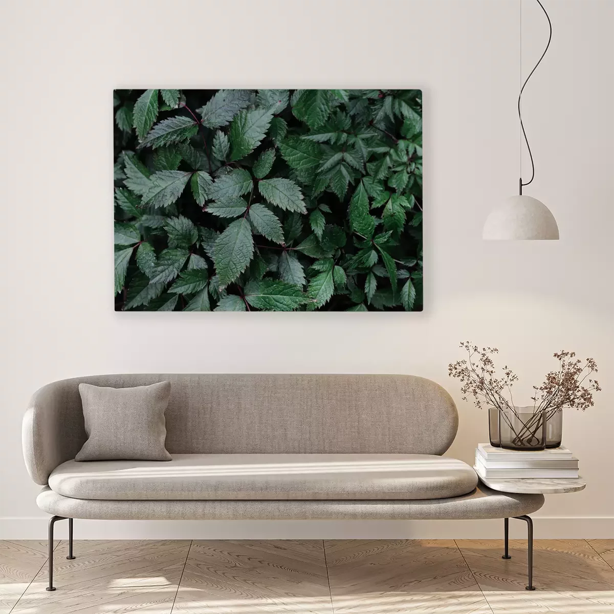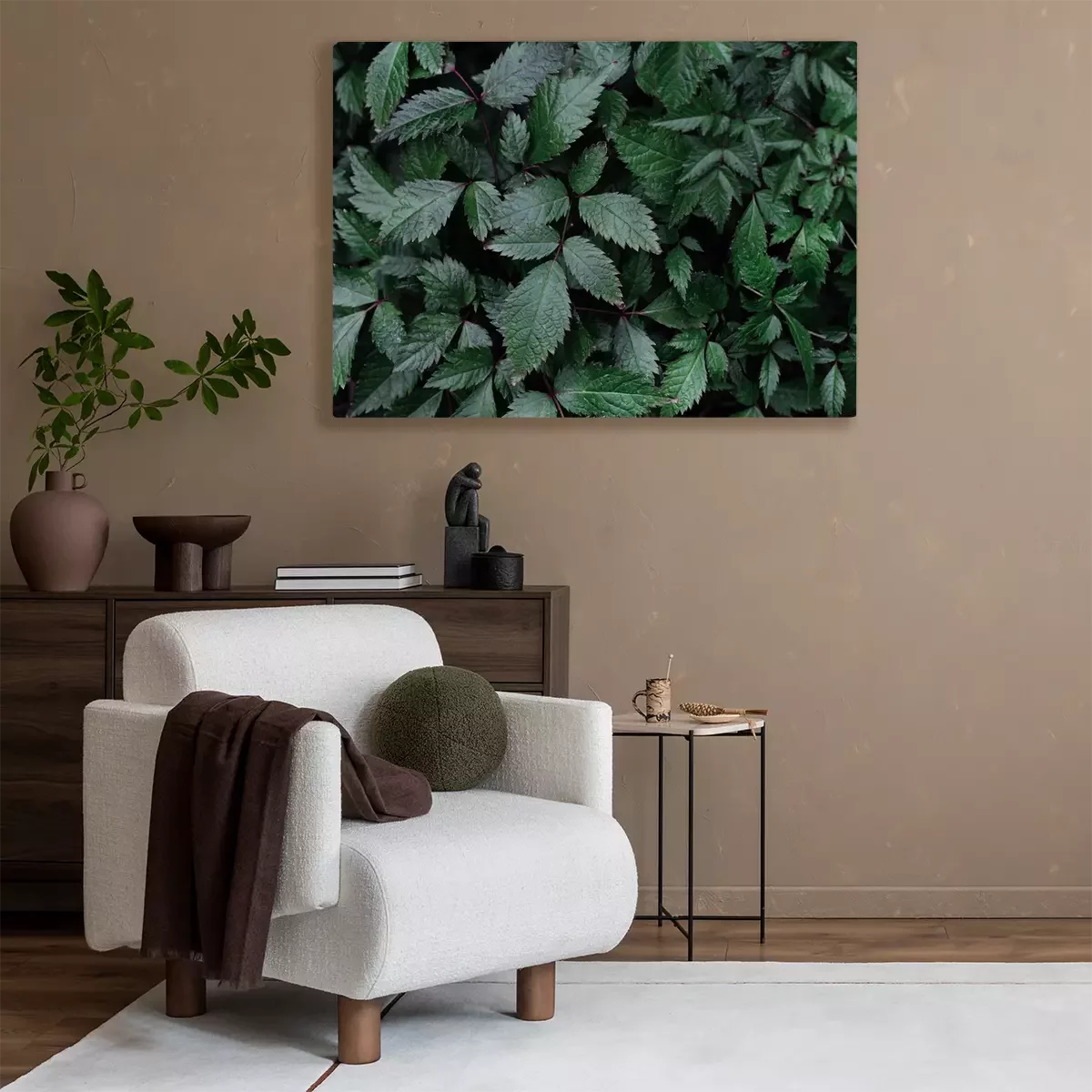 Canvas: Landscape closeup photo of astilbe plant foliage in the garden